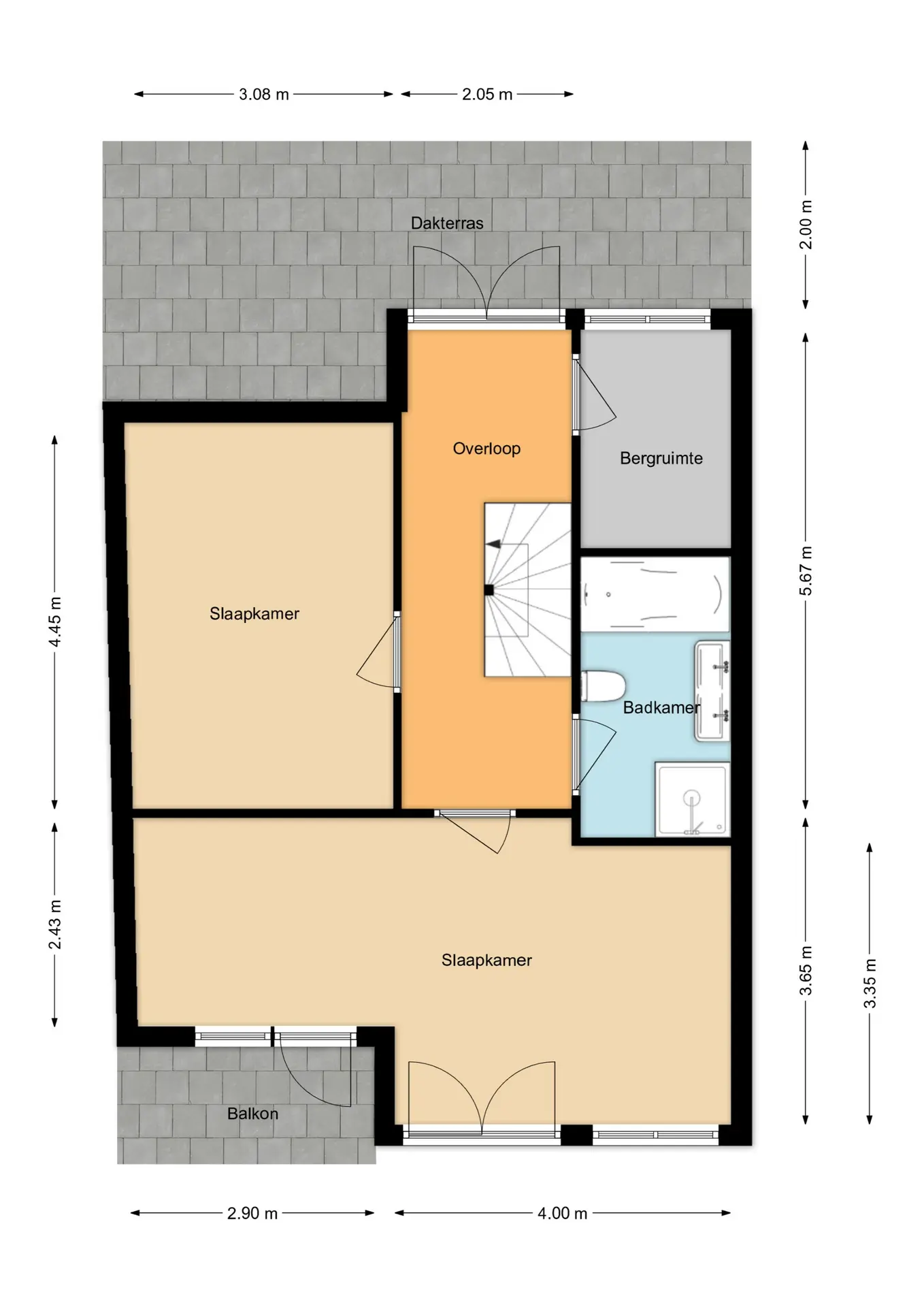 De tweede verdieping is verrassend ruim en biedt nog eens twee royale slaapkamers. Daarnaast is er een grote inpandige bergruimte aanwezig, ideaal voor extra opslag of het netjes opbergen van spullen.