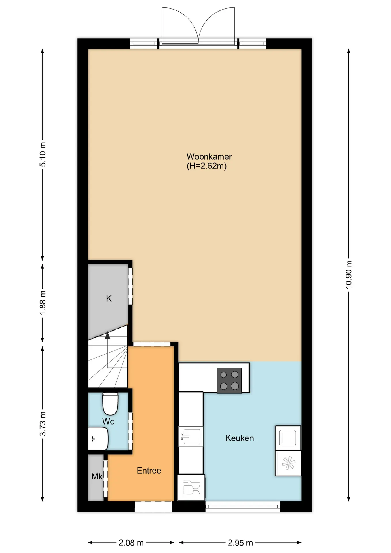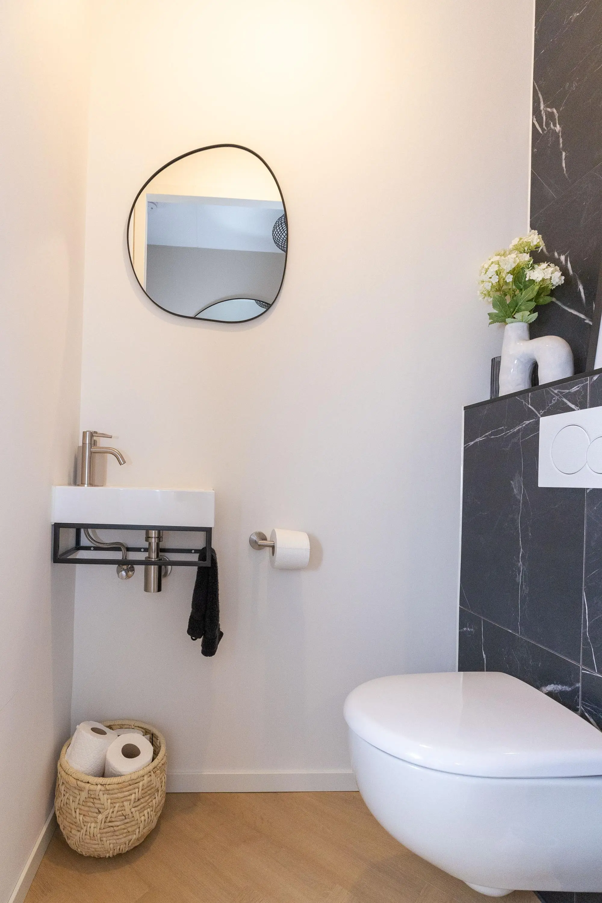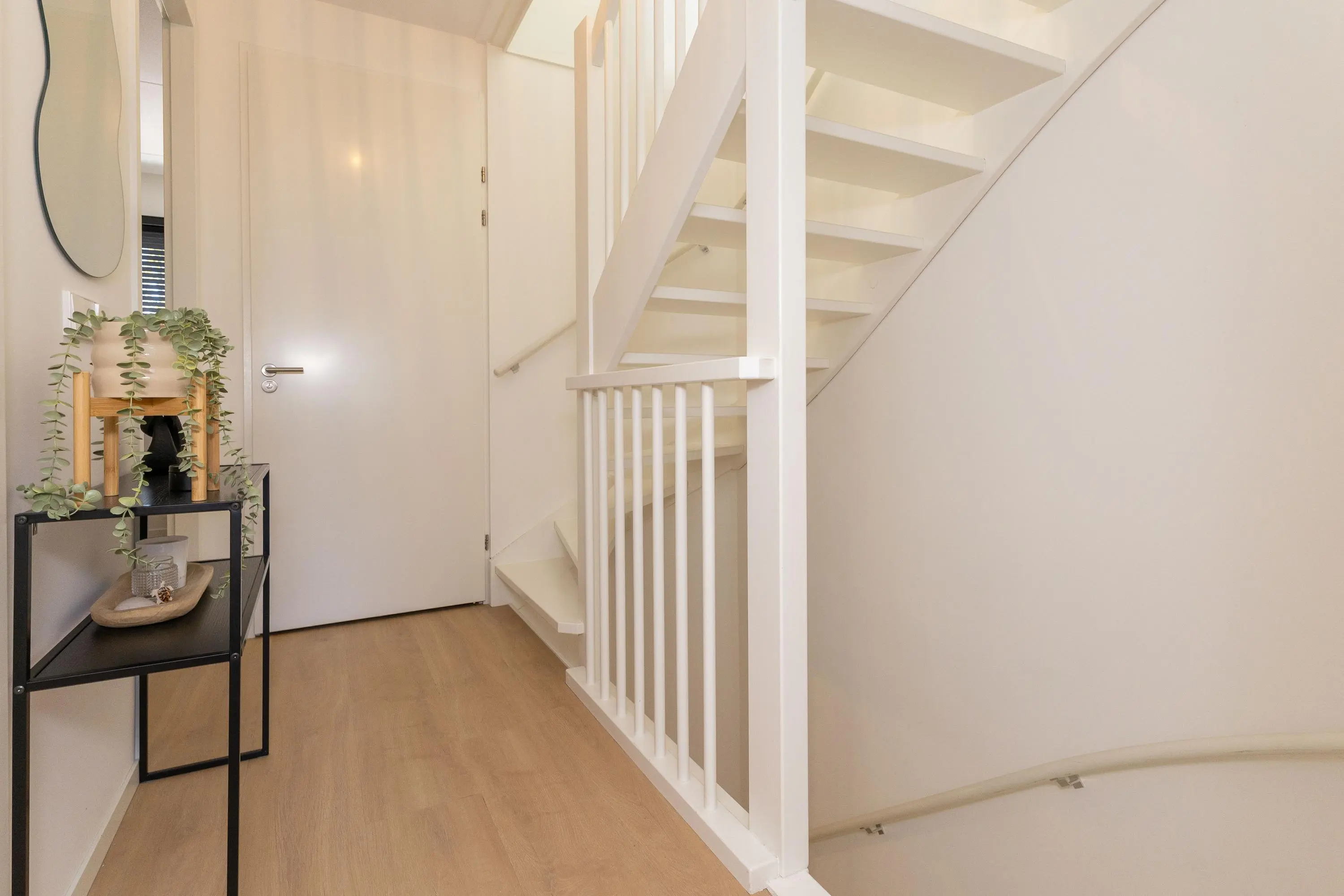 De moderne gevel, rustig straatbeeld en een strakke voortuin heten je welkom. Binnenkomend in de hal tref je direct het hoge afwerkingsniveau: een stijlvolle toiletruimte, moderne binnendeuren toegang tot de woonkamer.