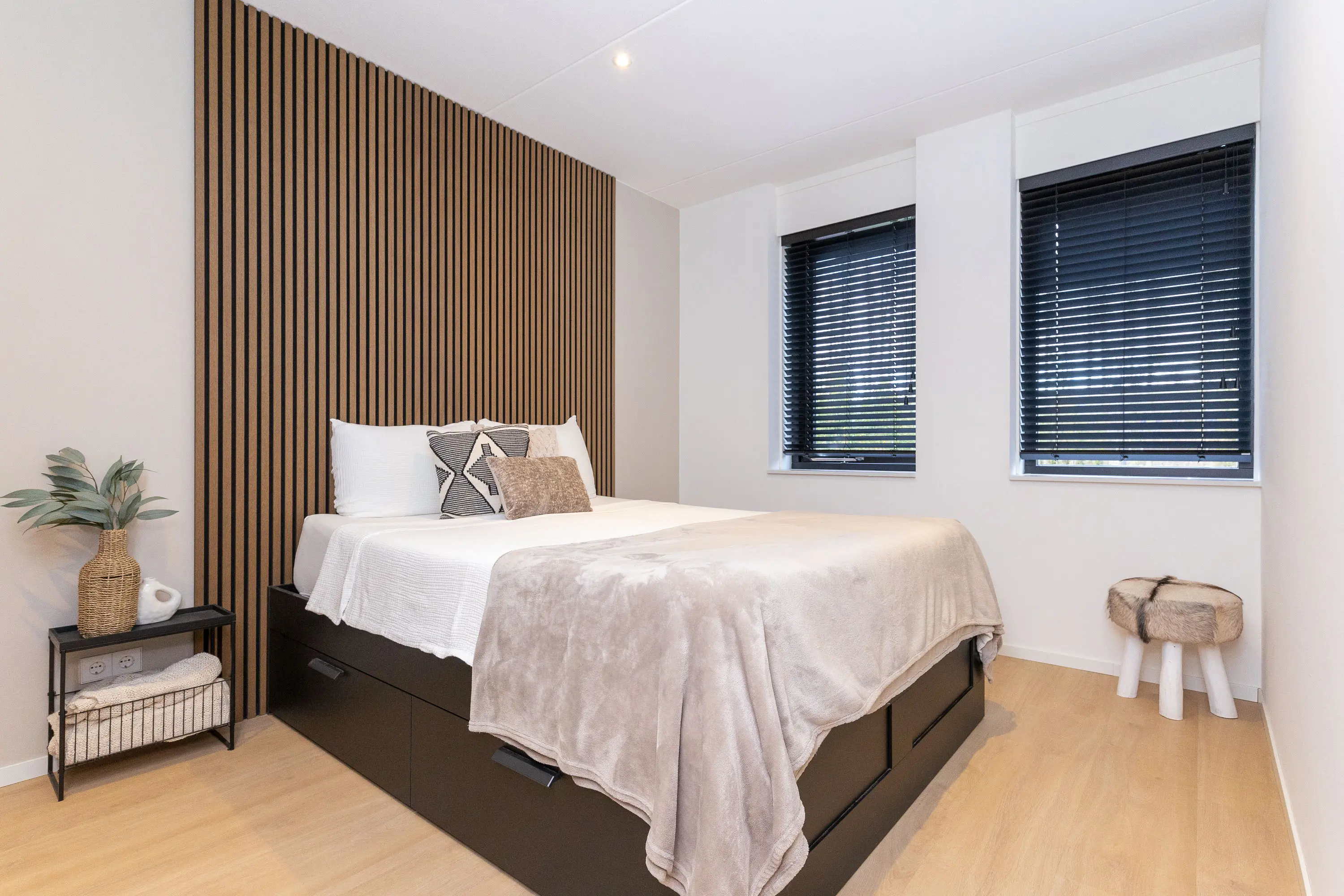 Ook op deze verdieping is overal vloerverwarming én vloerverkoeling aanwezig. Er zijn drie keurig afgewerkte slaapkamers, waarvan twee aan de achterzijde (waaronder de master bedroom) en één aan de voorzijde. Alle kamers zijn strak afgewerkt, met veel lichtinval en ruimte voor kasten.