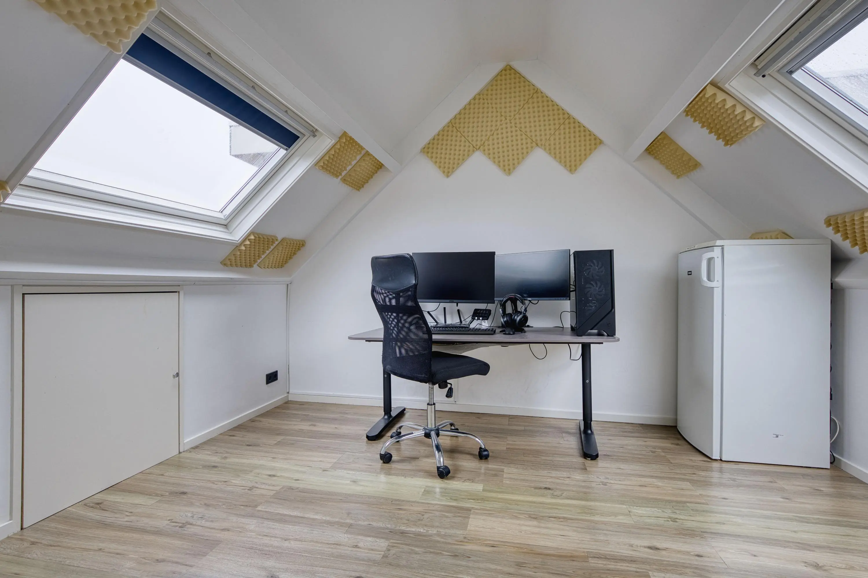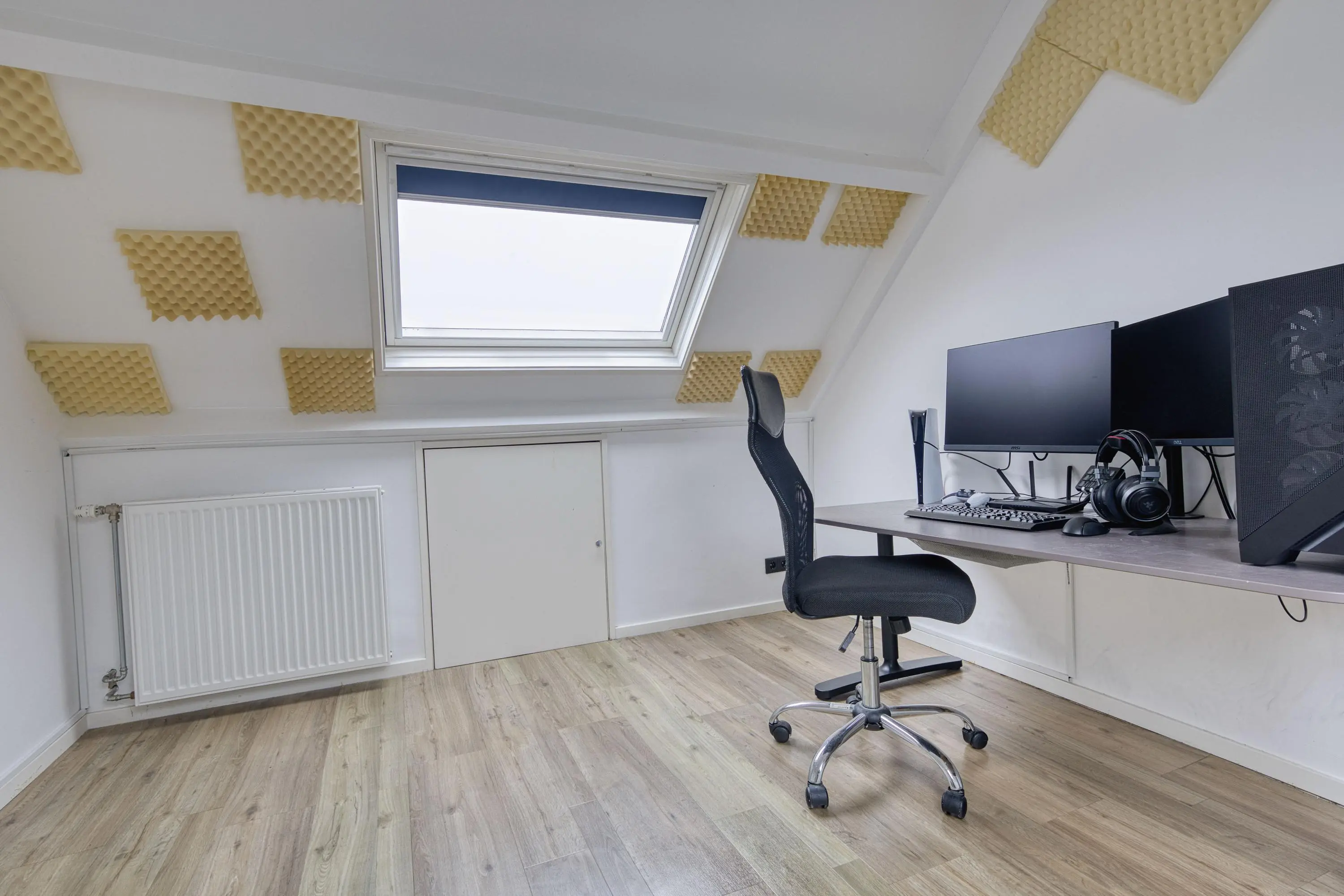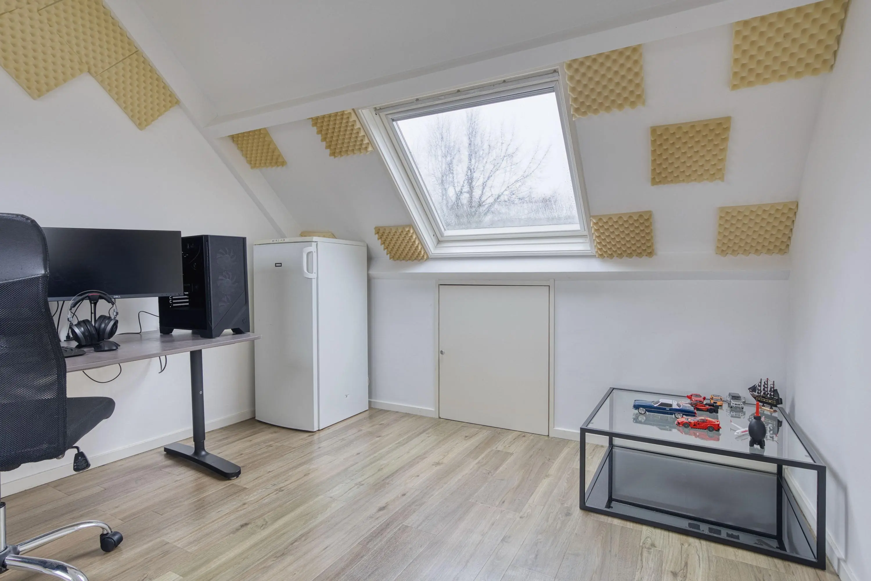 De tweede verdieping is bereikbaar via een vaste trap. Hier tref je een ruime voorzolder met veel bergruimte én een royale vierde slaapkamer met grote dakramen die zorgen voor volop daglicht.