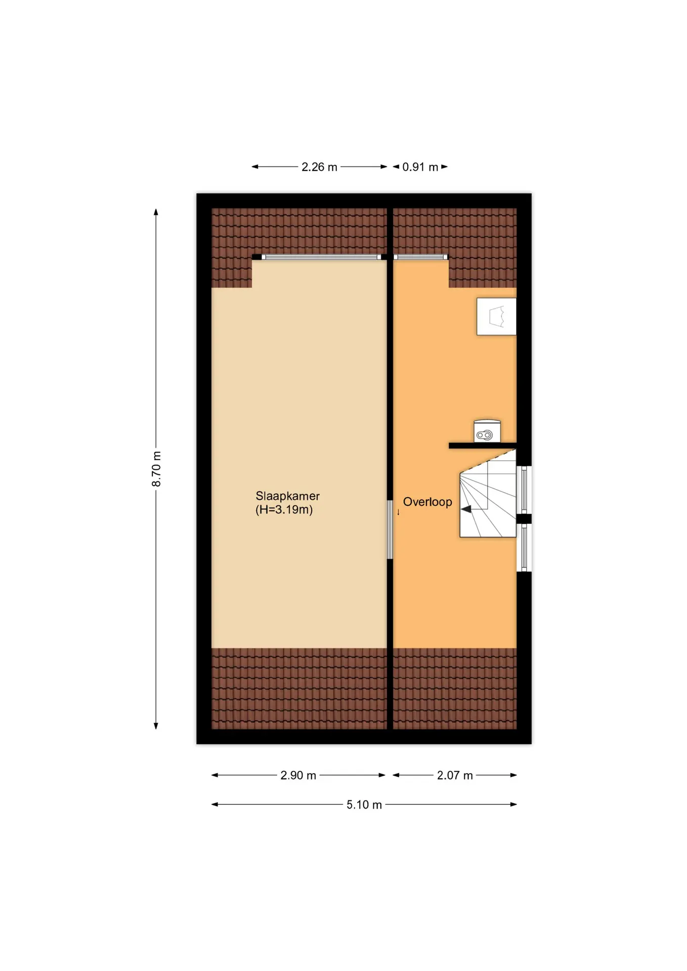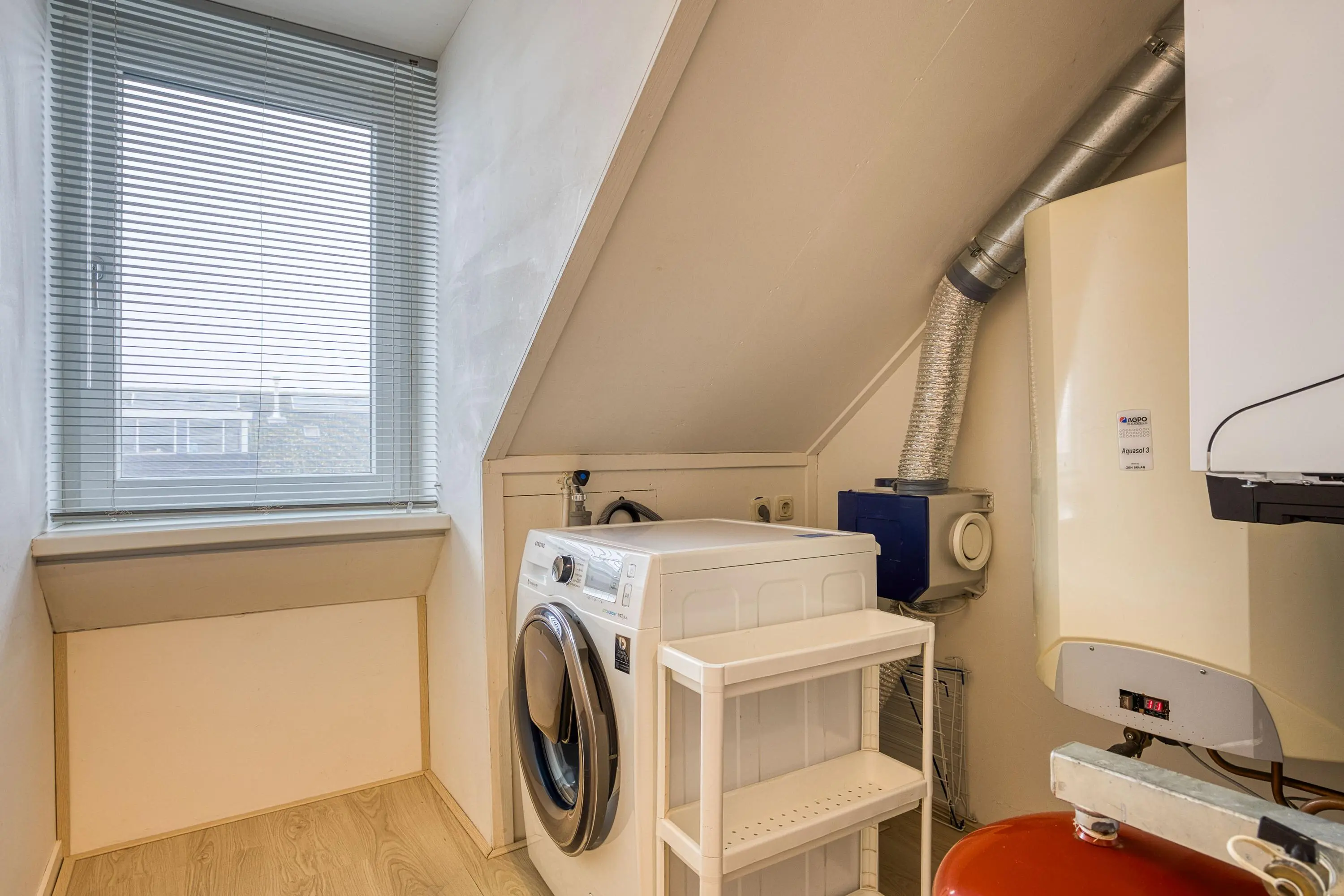 De tweede verdieping beschikt over een voorzolder met veel bergruimte, een extra wasmachineaansluiting, cv-installatie en warmteboiler. Dankzij de dakkapel is hier een volwaardige derde slaapkamer gerealiseerd ook deze ruimte is voorzien van airconditioning.
