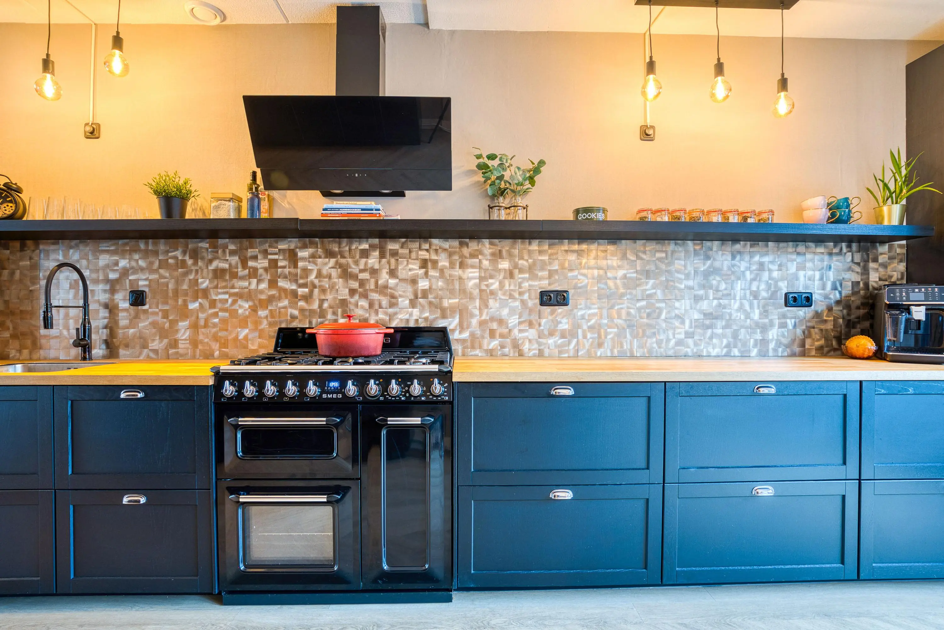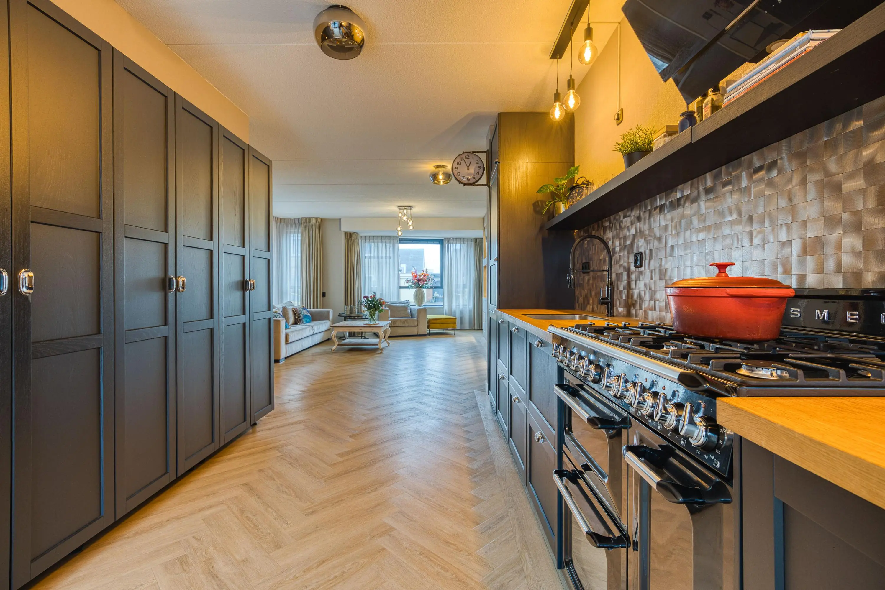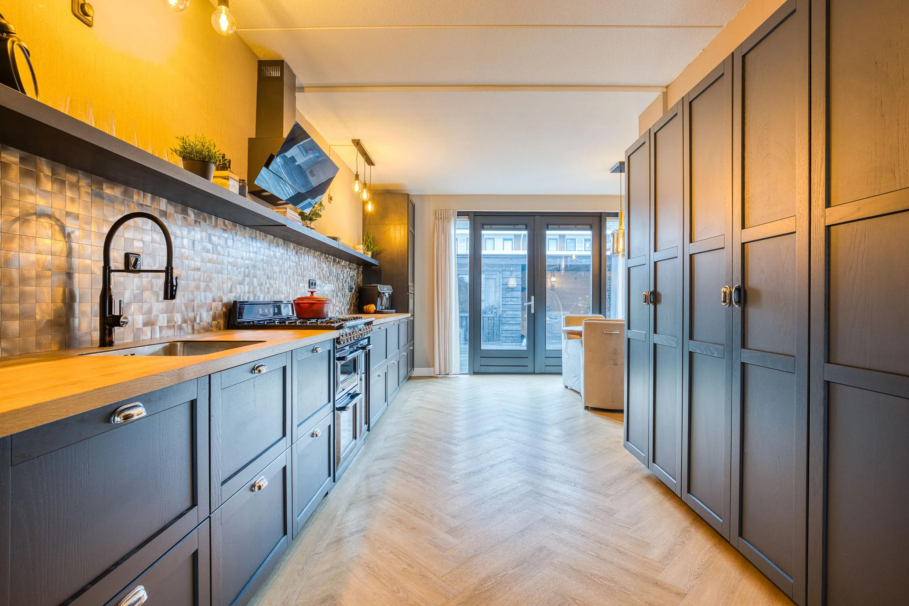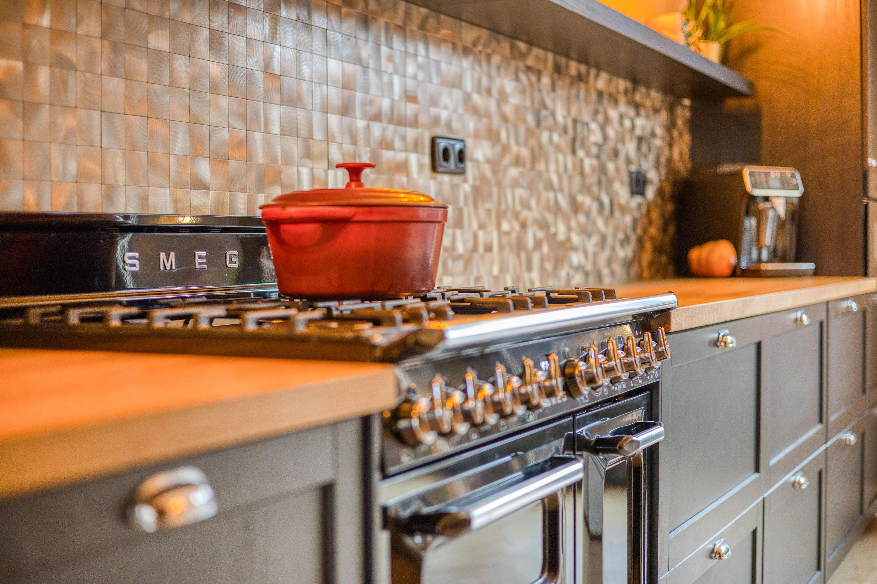 De luxe keuken is een droom voor de kookliefhebber en is uitgerust met diverse hoogwaardige inbouwapparatuur, waaronder een 6-pits Smeg fornuis met oven, grill én bordenwarmer. Hier kookt u met plezier voor familie en vrienden.