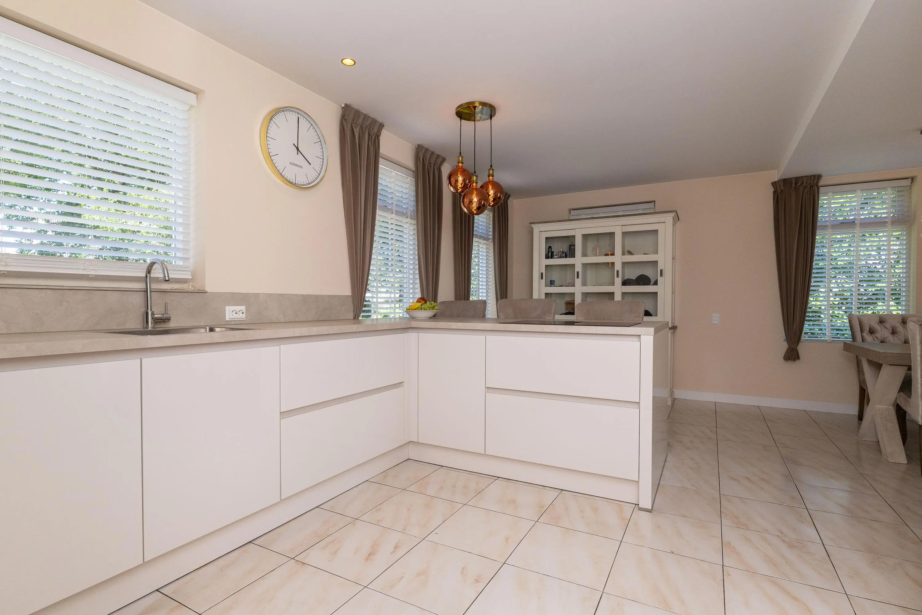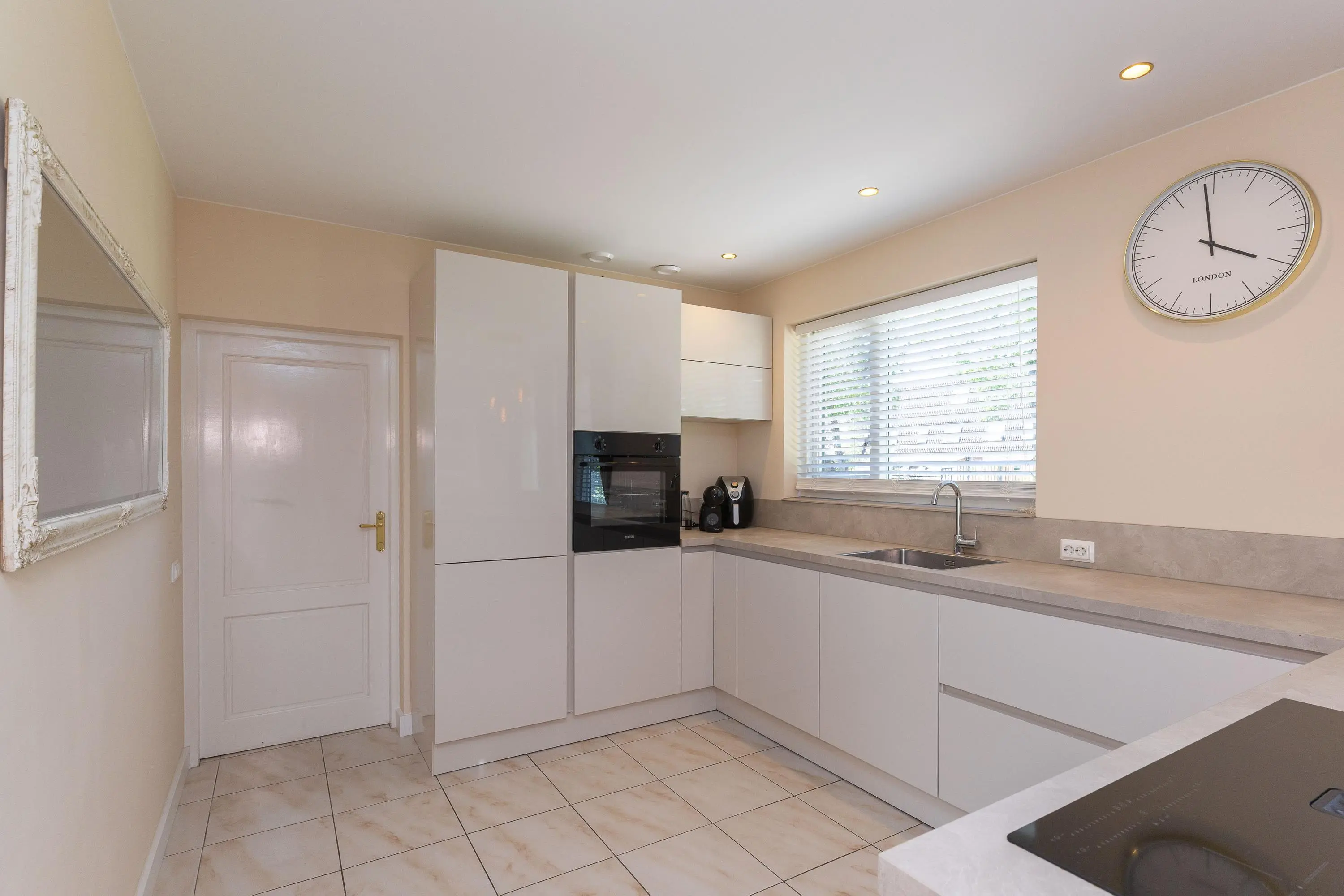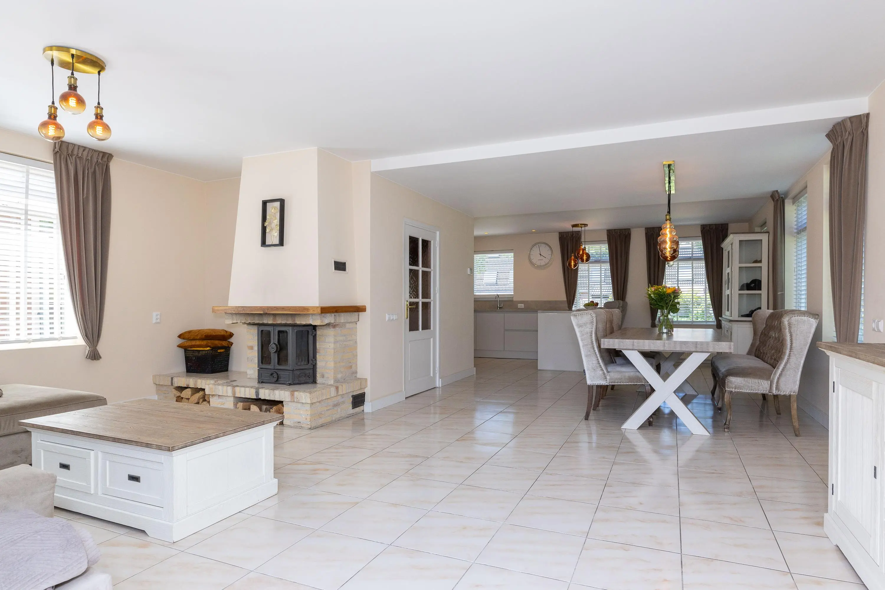 Entree, ruime hal met garderobe, meterkast en luxe toilet. Vanuit de hal, met trapopgang naar de eerste verdieping, bereikt u het woongedeelte. De ruime woonkamer is voorzien van veel raampartijen en een schuifpui die toegang biedt tot de voortuin. De open keuken in U-opstelling is in 2023 vernieuwd en voorzien van een koel-/vriescombinatie, vaatwasser, heteluchtoven en een inductiekookplaat met geïntegreerde afzuiging. Aansluitend bevindt zich de bijkeuken met de aansluitingen voor wasmachine en droger. Vanuit de bijkeuken heeft u toegang tot zowel de achtertuin als de garage.