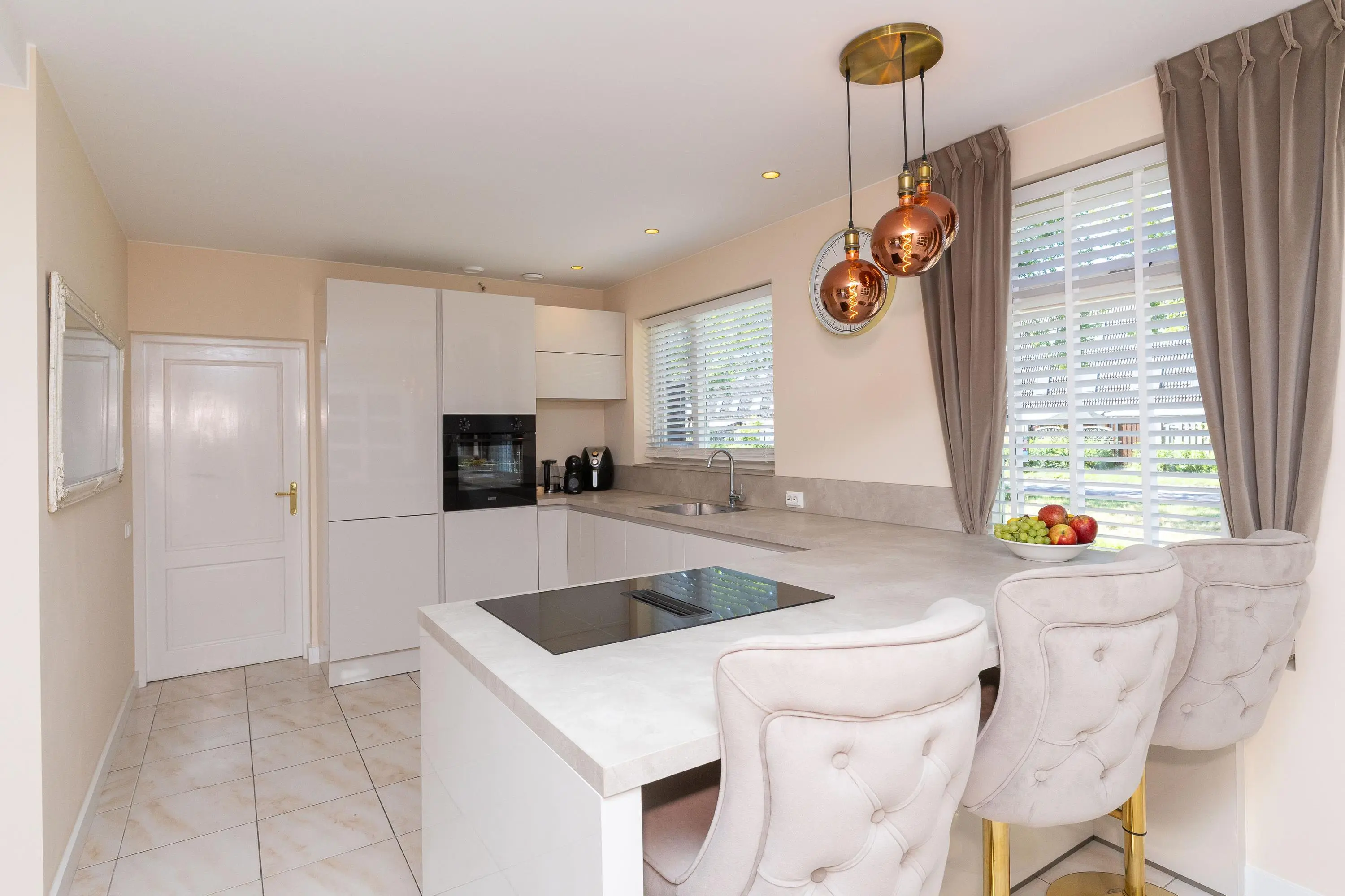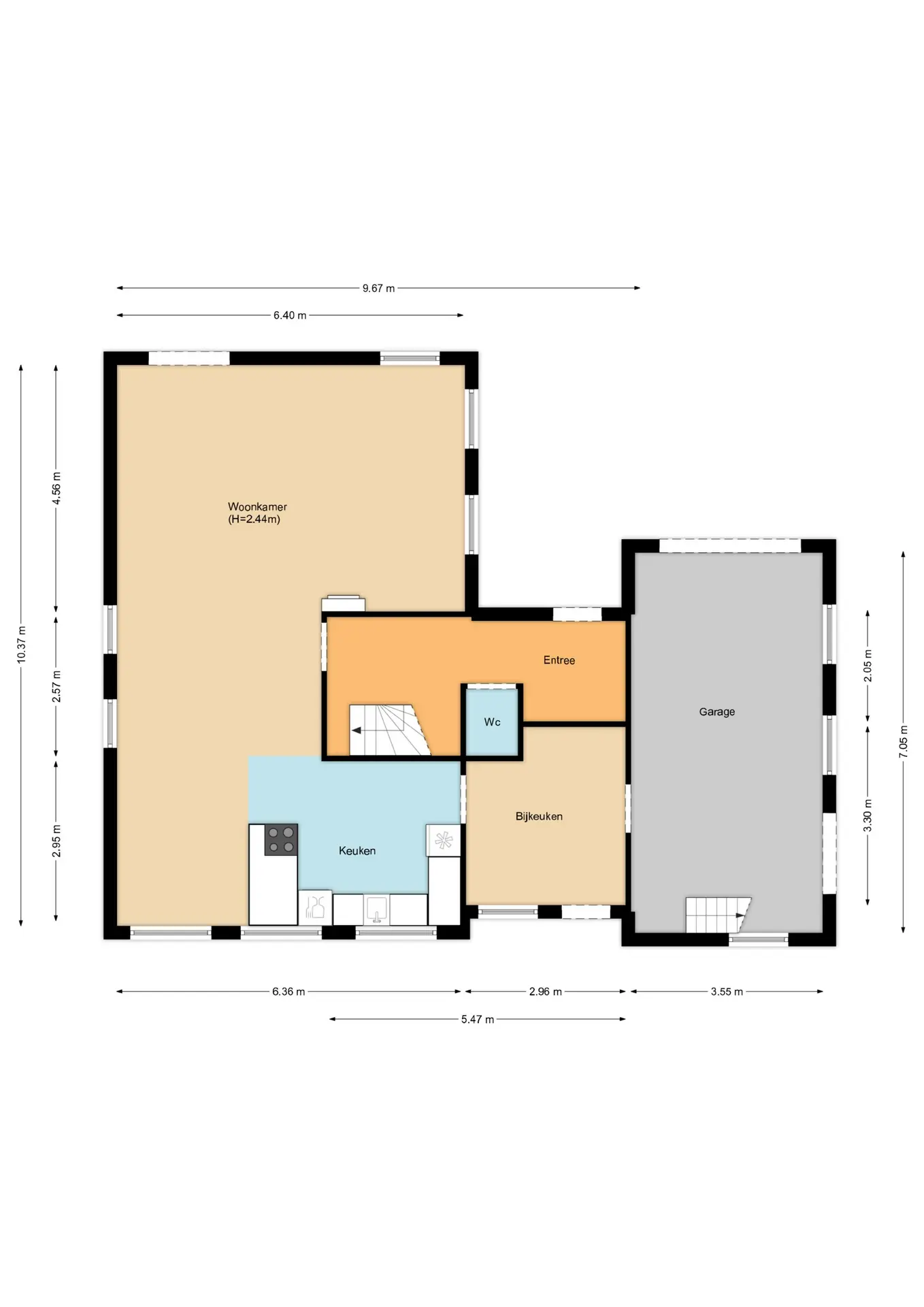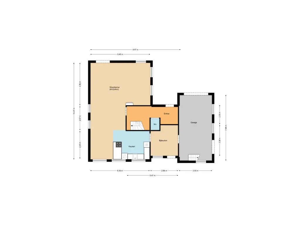 Entree, ruime hal met garderobe, meterkast en luxe toilet. Vanuit de hal, met trapopgang naar de eerste verdieping, bereikt u het woongedeelte. De ruime woonkamer is voorzien van veel raampartijen en een schuifpui die toegang biedt tot de voortuin. De open keuken in U-opstelling is in 2023 vernieuwd en voorzien van een koel-/vriescombinatie, vaatwasser, heteluchtoven en een inductiekookplaat met geïntegreerde afzuiging. Aansluitend bevindt zich de bijkeuken met de aansluitingen voor wasmachine en droger. Vanuit de bijkeuken heeft u toegang tot zowel de achtertuin als de garage.
