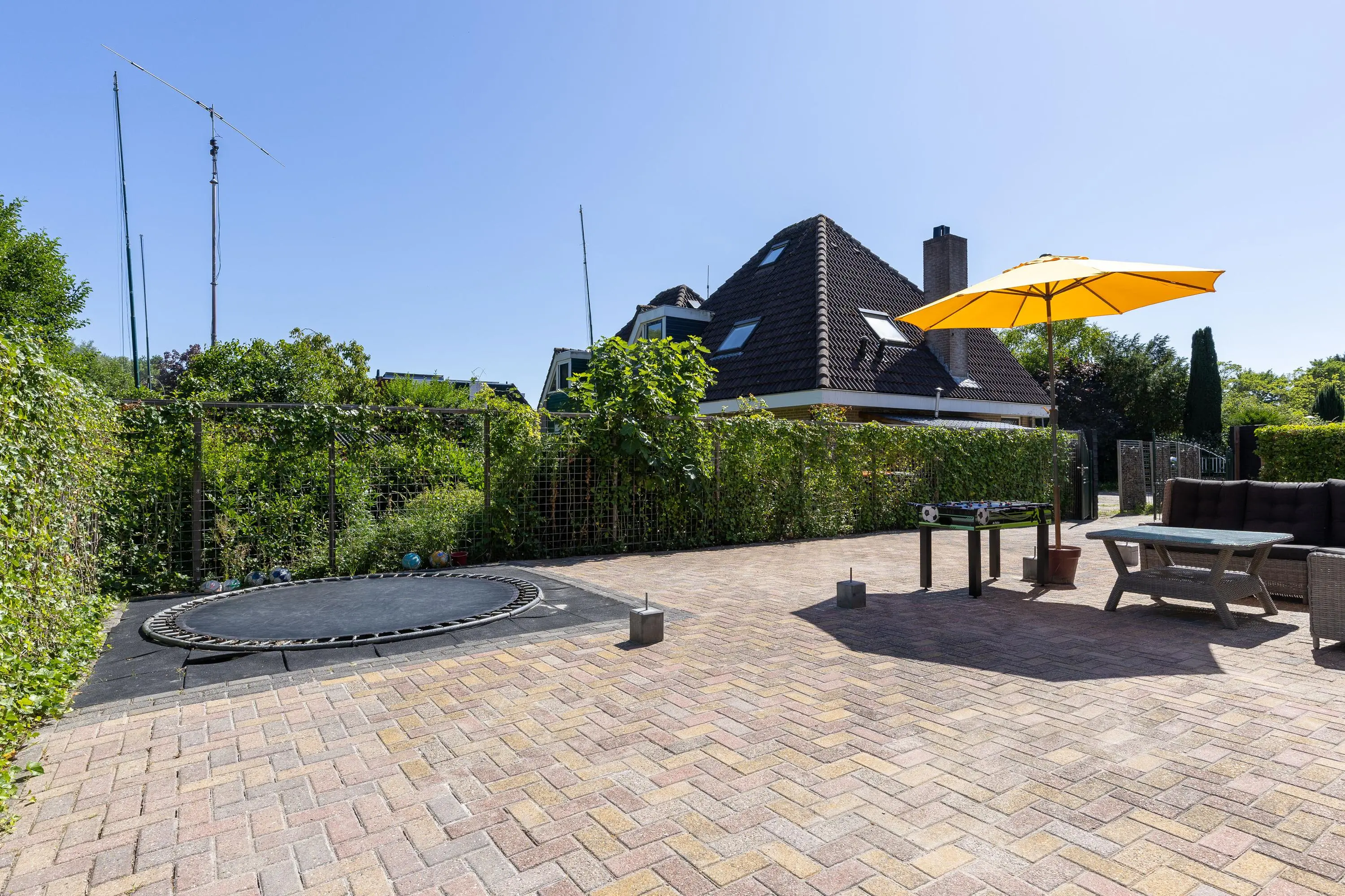 De tuin ligt rondom de woning, zodat u op elk moment van de dag van de zon kunt genieten. Door de hoekligging grenzen twee zijden van het perceel aan het water. De royale voortuin is bereikbaar via de schuifpui in de woonkamer. De achtertuin, waar u kunt genieten van de avondzon, is bereikbaar via de bijkeuken. Op eigen terrein is ruimte voor het parkeren van meerdere auto’s.
