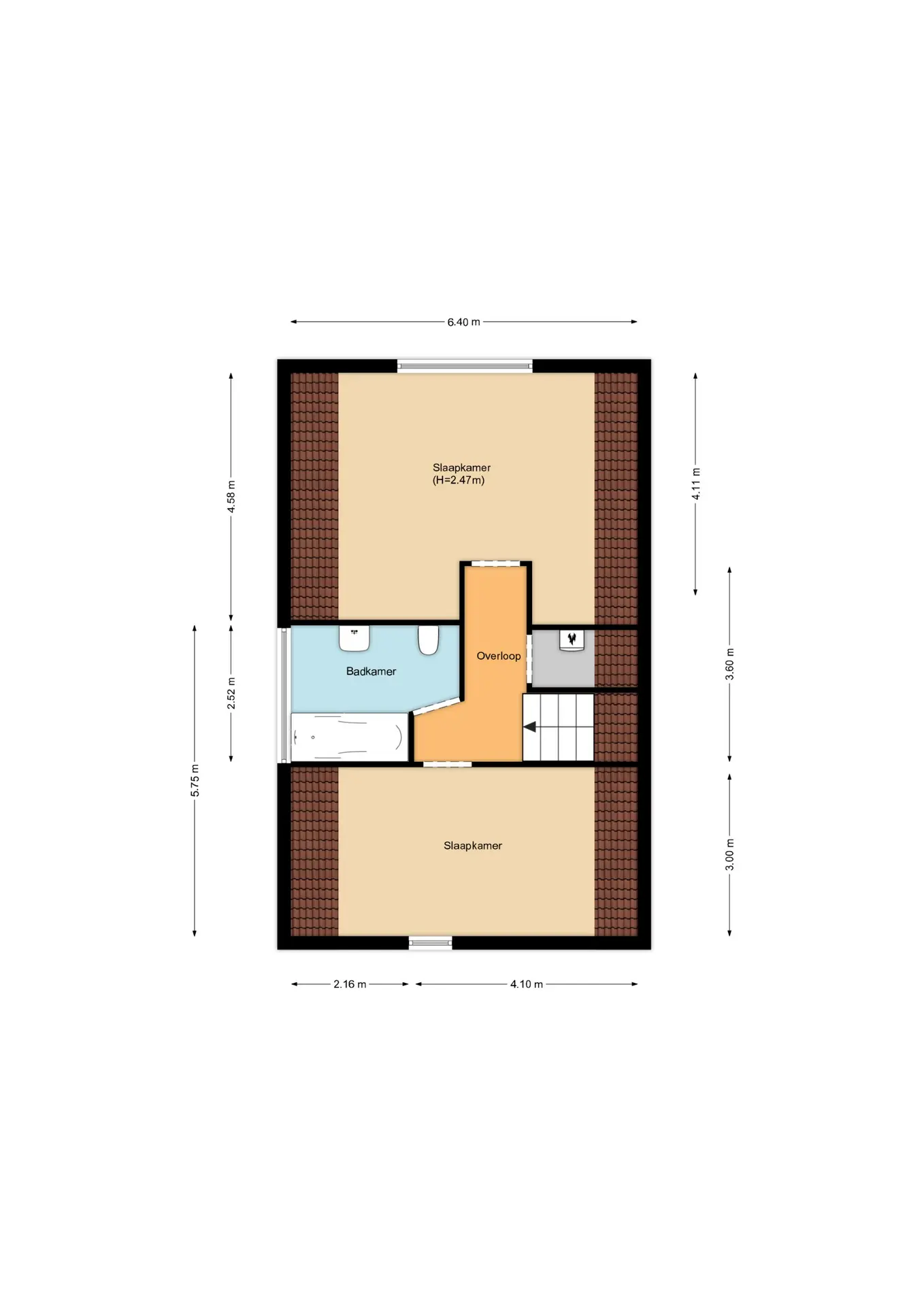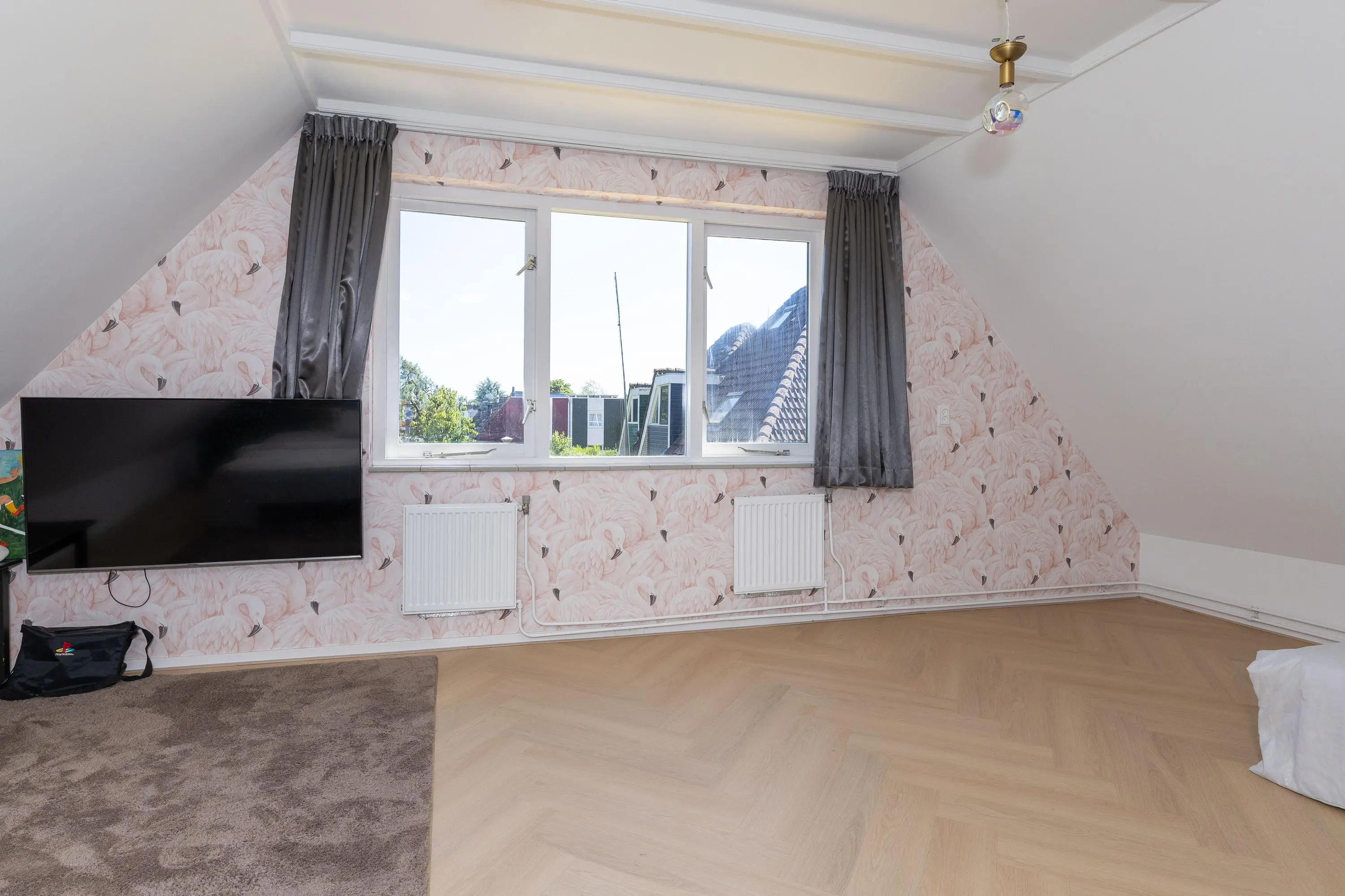 Via de overloop heeft u toegang tot twee ruime slaapkamers, de badkamer en de cv-ruimte (cv-ketel uit 2019). De badkamer is vernieuwd in 2023 en beschikt over een ligbad, wastafelmeubel en een hangcloset. De slaapkamer aan de voorzijde is eenvoudig te splitsen in twee aparte kamers.