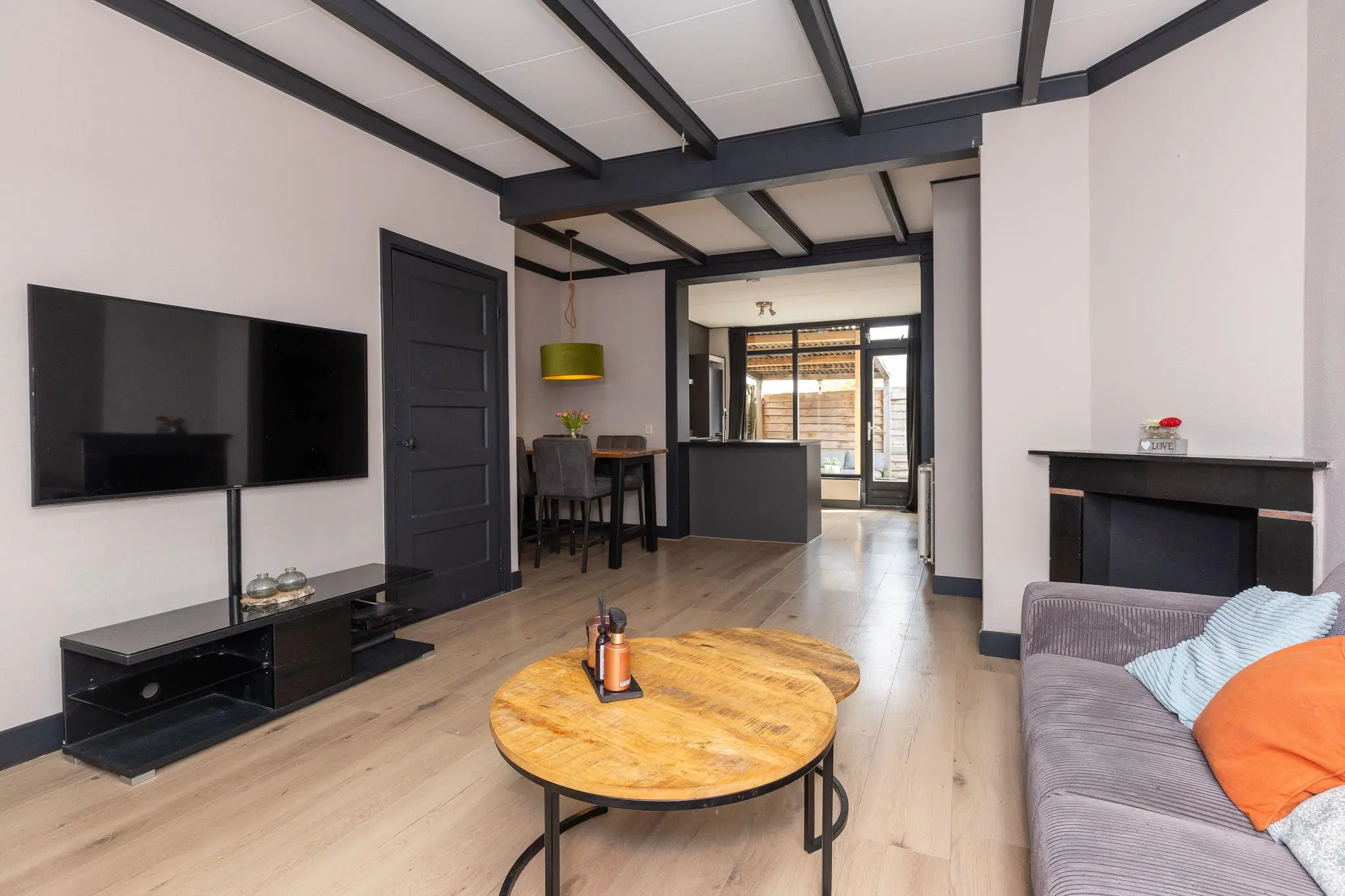 Stap binnen in de lichte, straatgerichte woonkamer die direct een gevoel van warmte en ruimte geeft. De sfeervolle afwerking en de uitbouw aan de achterzijde maken dit de ideale plek voor gezellige avonden en lange diners met familie of vrienden. De ruime L-vormige keuken grenst aan de achtertuin en is praktisch ingericht met voldoende werk- en opbergruimte.