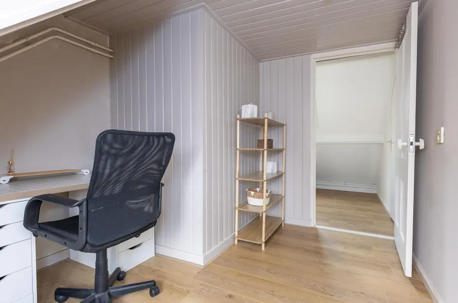 Op de eerste verdieping zijn twee comfortabele slaapkamers te vinden, evenals een royale overloop met dakraam. Deze ruimte biedt volop mogelijkheden, bijvoorbeeld voor een thuiswerkplek, speelruimte of zelfs een extra slaapkamer.