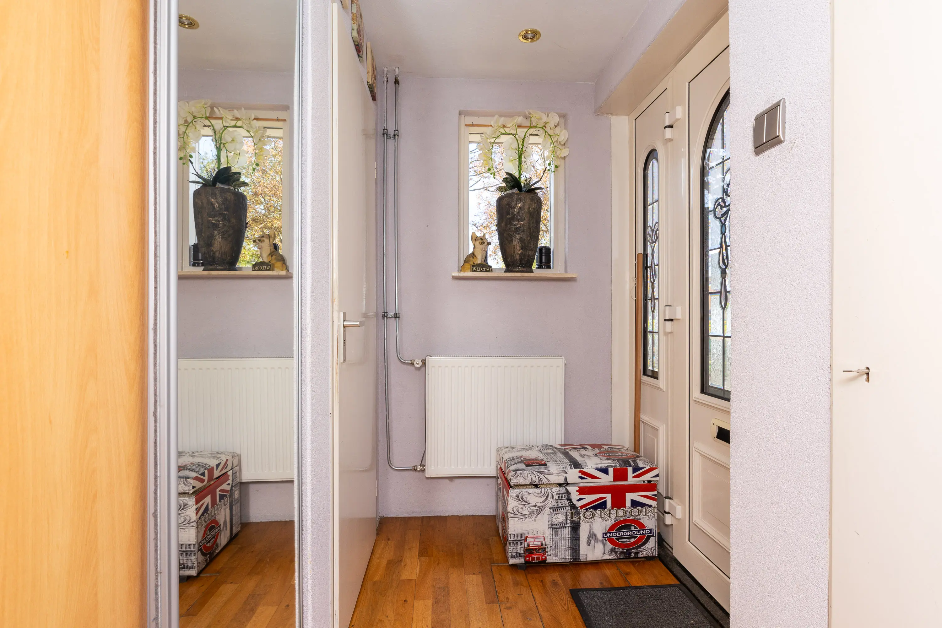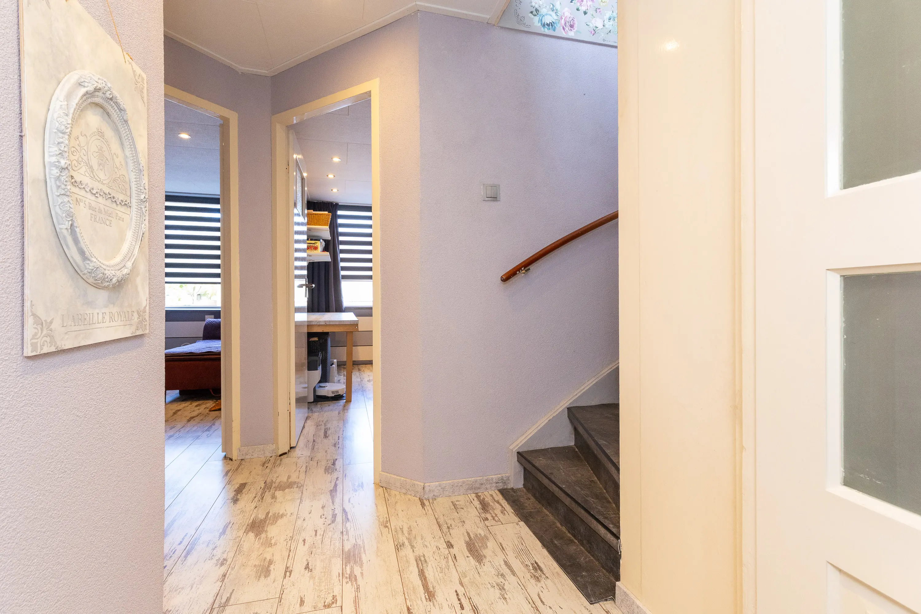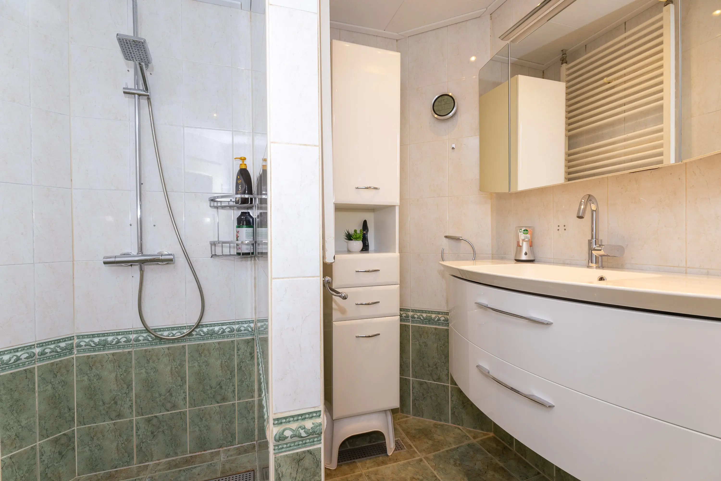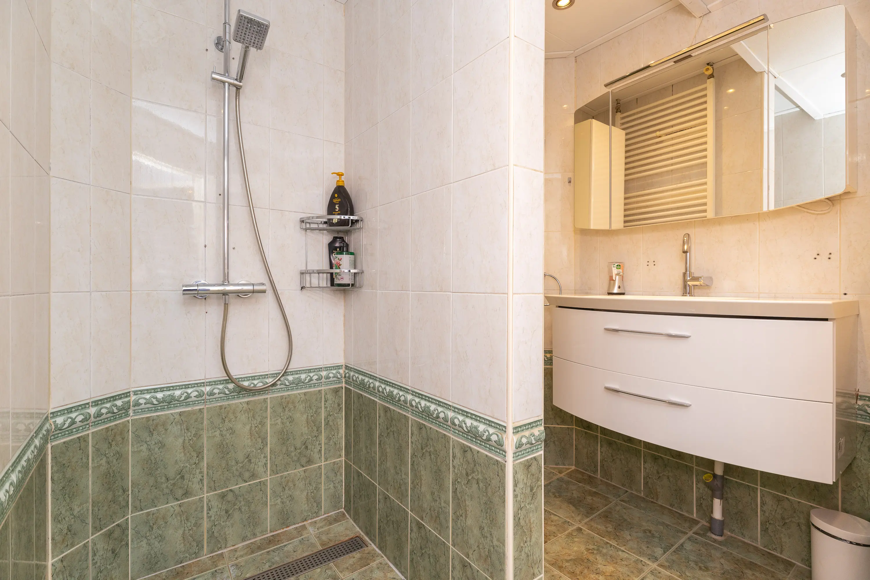 Op de eerste verdieping bevinden zich drie goed bemeten slaapkamers en een badkamer met inloopdouche, wastafelmeubel en een tweede toilet. Alles is netjes onderhouden en functioneel ingericht, klaar voor dagelijks gezinsgebruik.