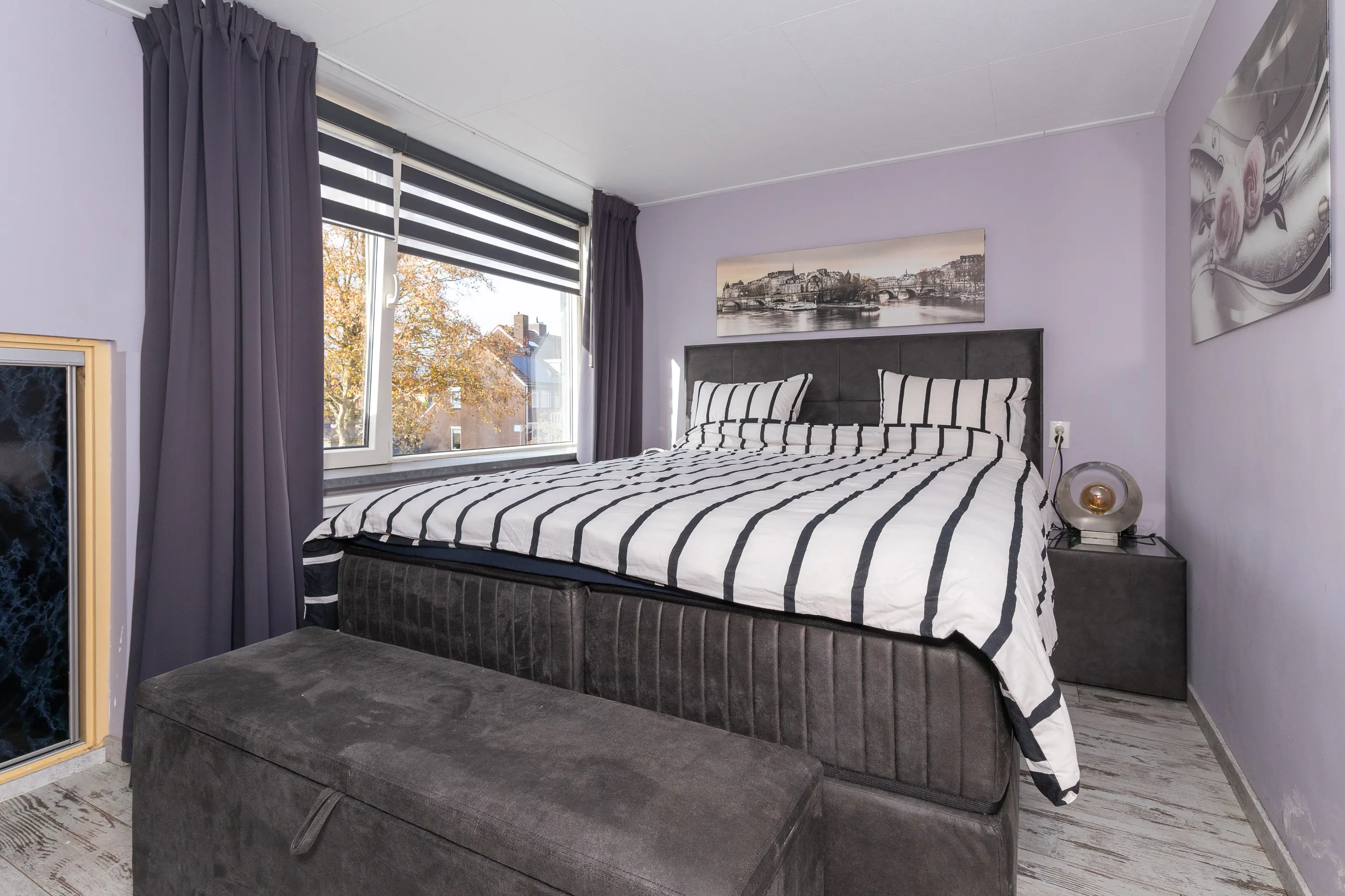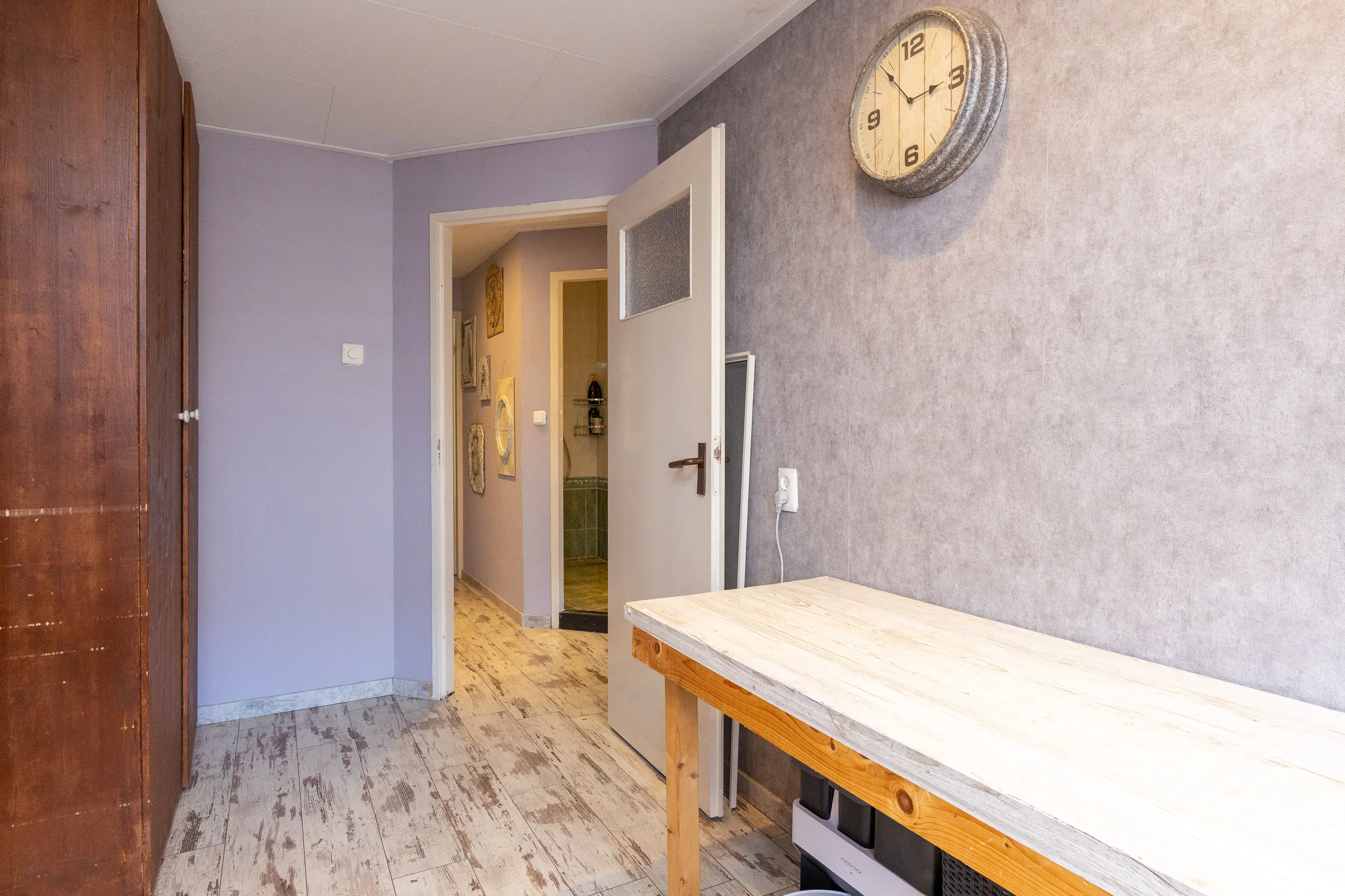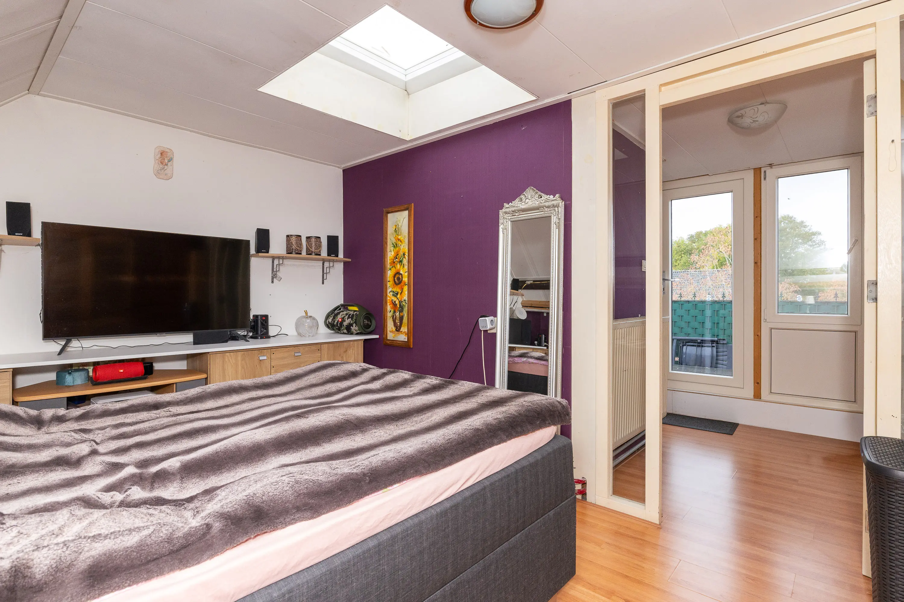 De tuingerichte woonkamer biedt veel privacy en een warme, huiselijke sfeer. De grote raampartij zorgt voor een fijne lichtinval en een mooie verbinding met de onderhoudsvriendelijke achtertuin, bereikbaar via de aangebouwde bijkeuken.