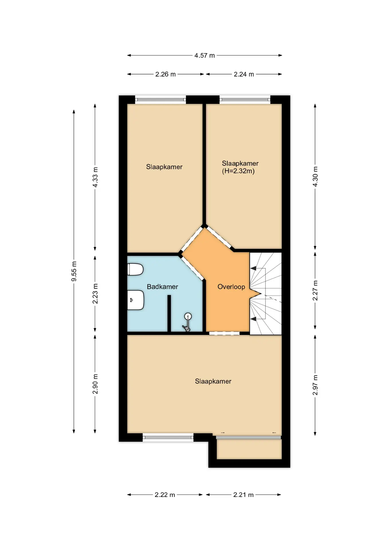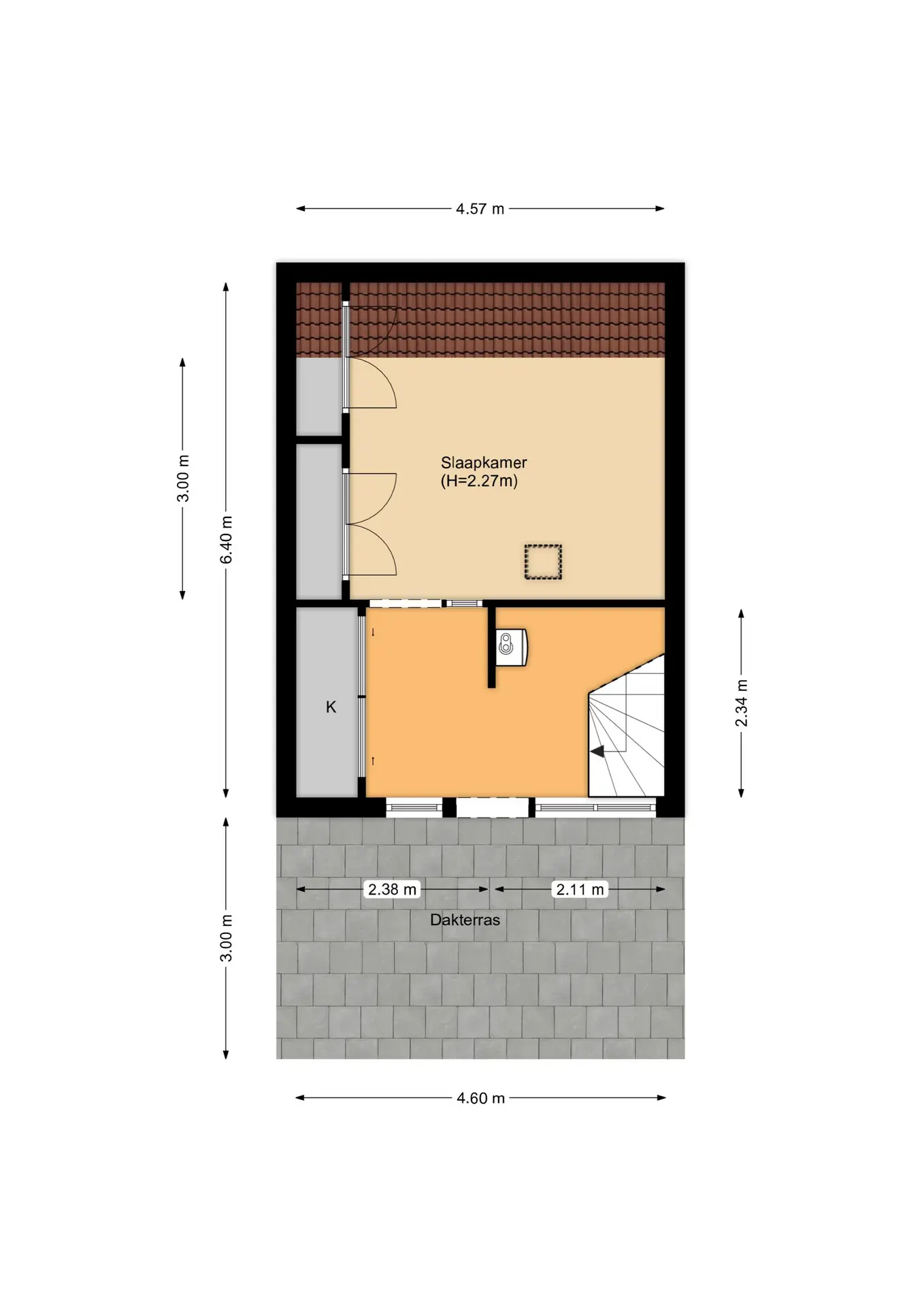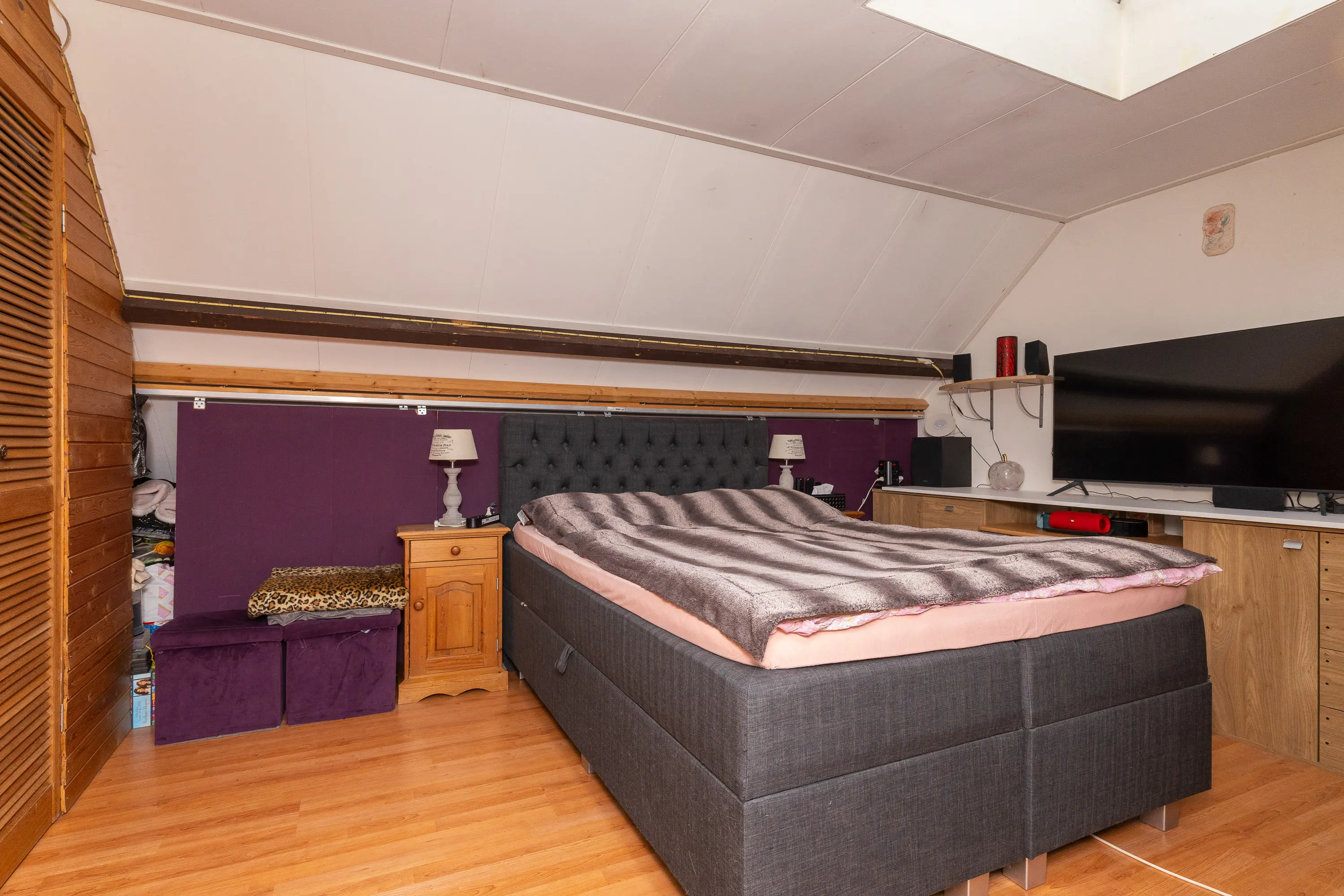 Via een vaste trap bereikt u de tweede verdieping, waar een tussenhal toegang geeft tot de vierde slaapkamer. Deze ruimte is ideaal als tienerkamer, werkkamer of hobbyruimte. Vanuit de tussenhal stapt u tevens het ruime dakterras (ca. 4,60 m x 3,00 m) op het westen op – een heerlijke plek om na een drukke dag te ontspannen en te genieten van de middag- en avondzon.
