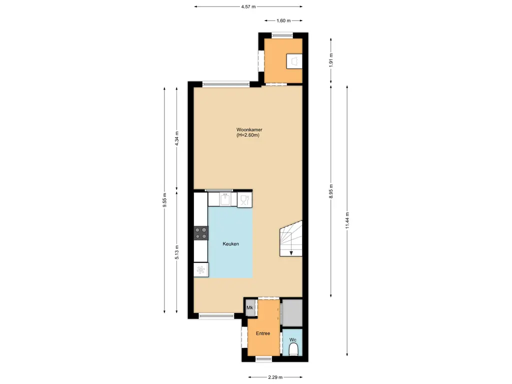 Bij binnenkomst valt direct de lichte, straatgerichte open woonkeuken op. Deze is voorzien van diverse recent vernieuwde inbouwapparatuur, waaronder een inductiekookplaat, combimagnetron met stoomfunctie en vaatwasser.
