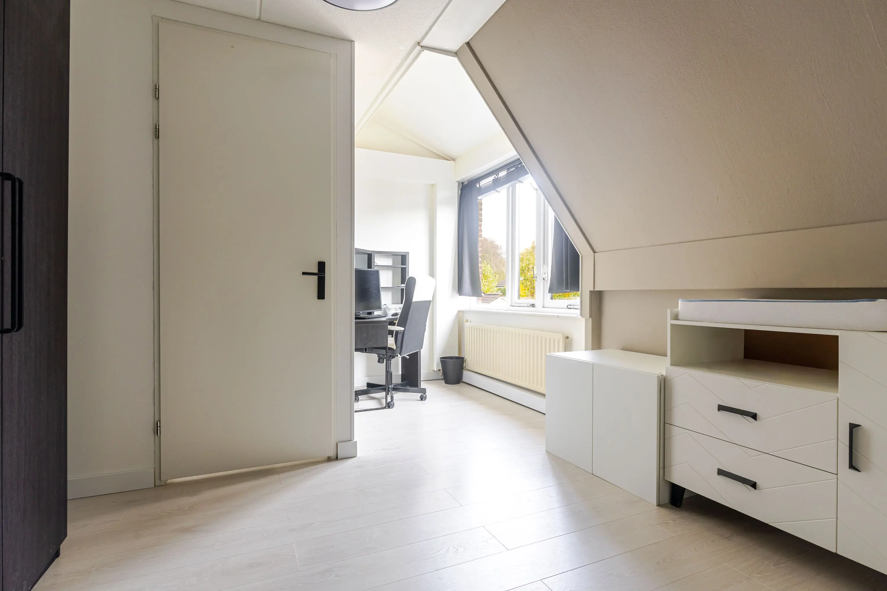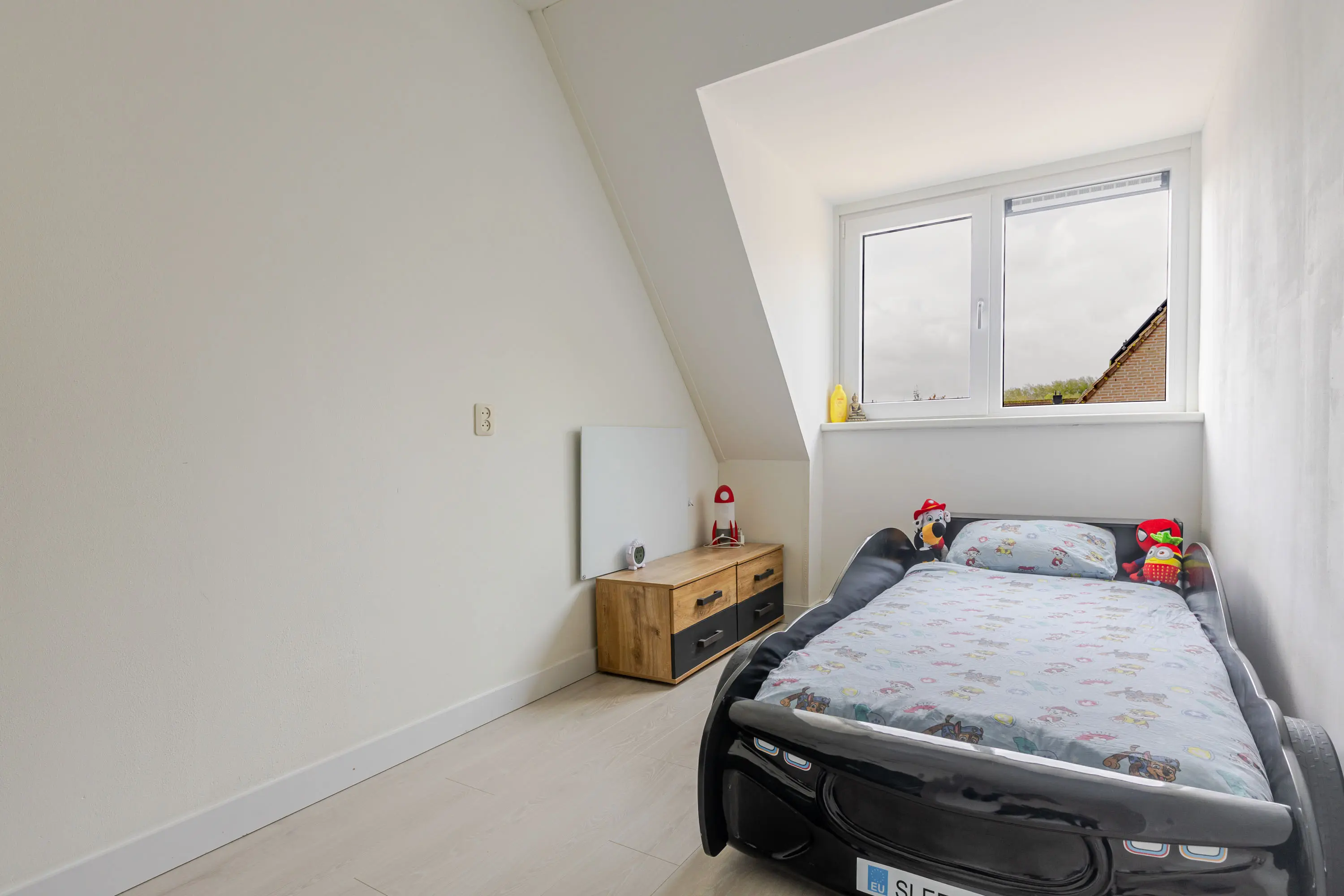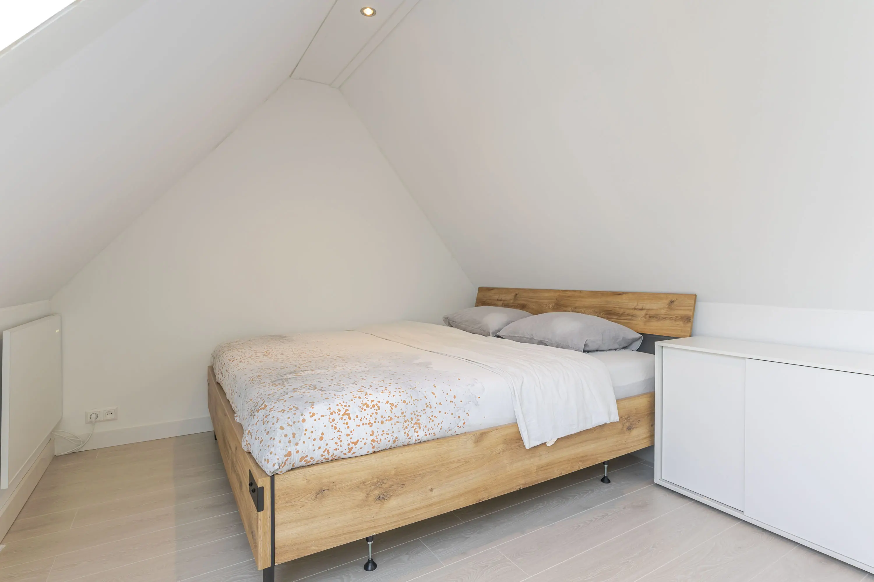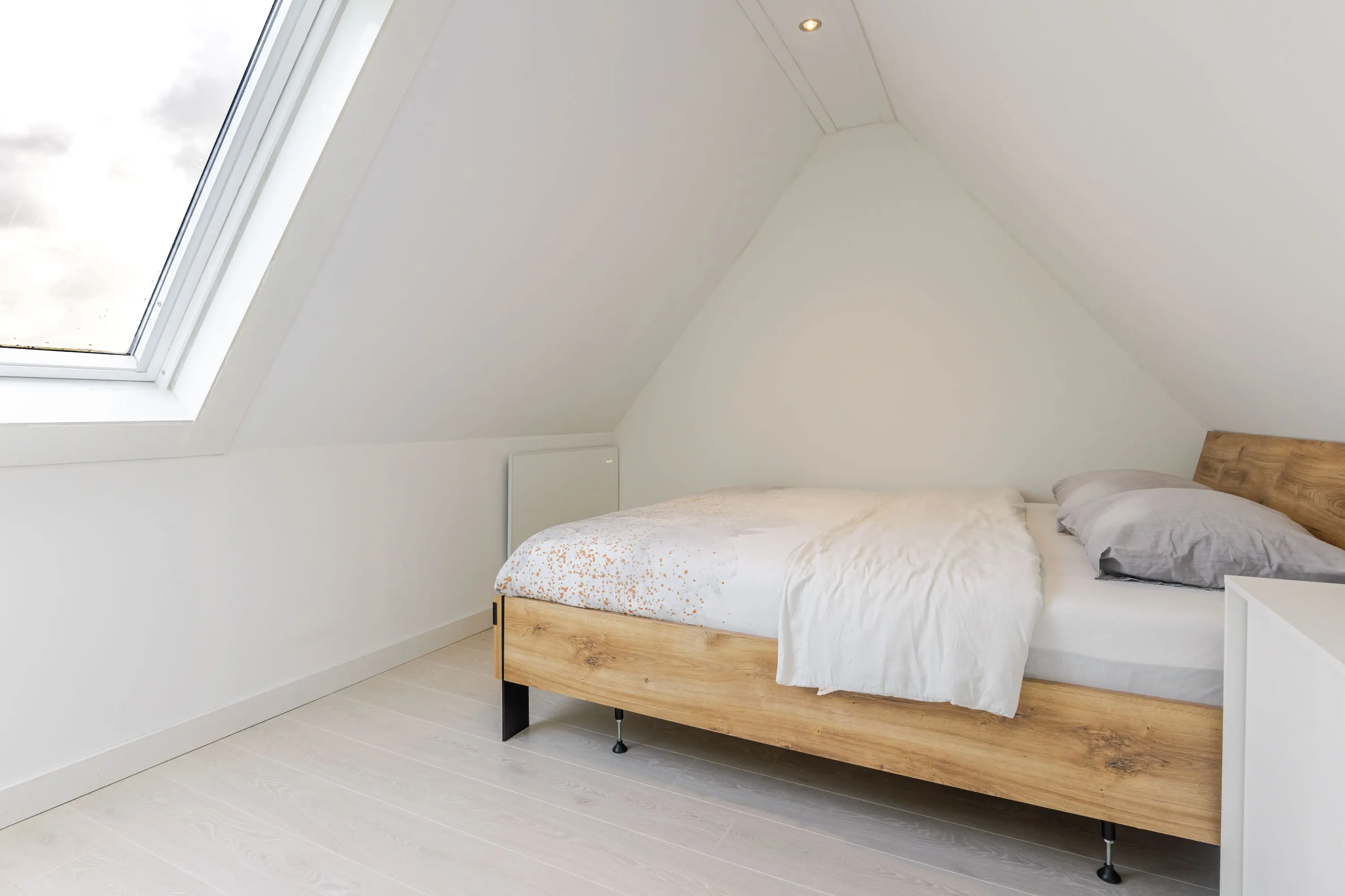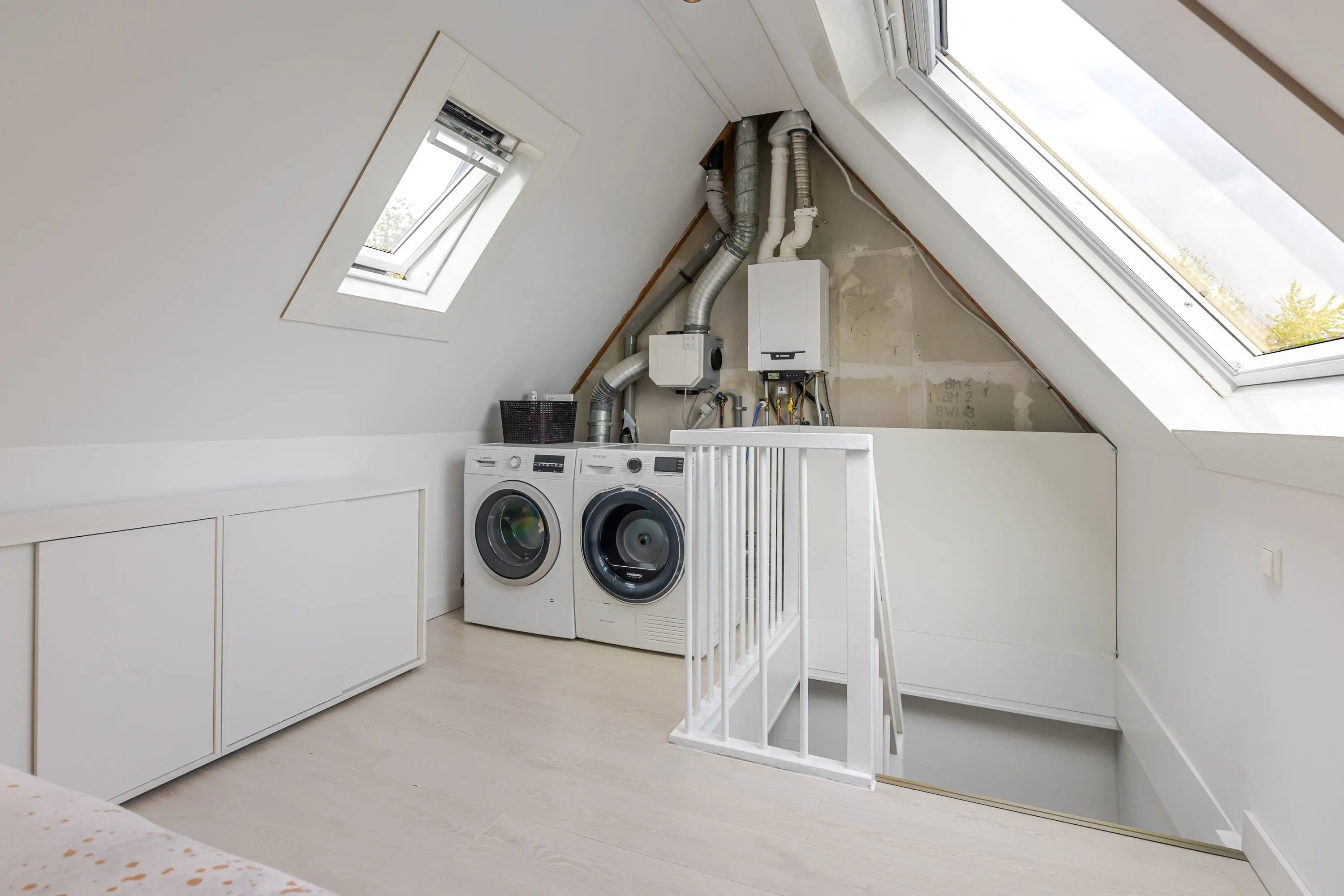 Op de voorzolder is plaats voor de wasmachine en droger en door de dakramen is er een lichte derde slaapkamer gerealiseerd.