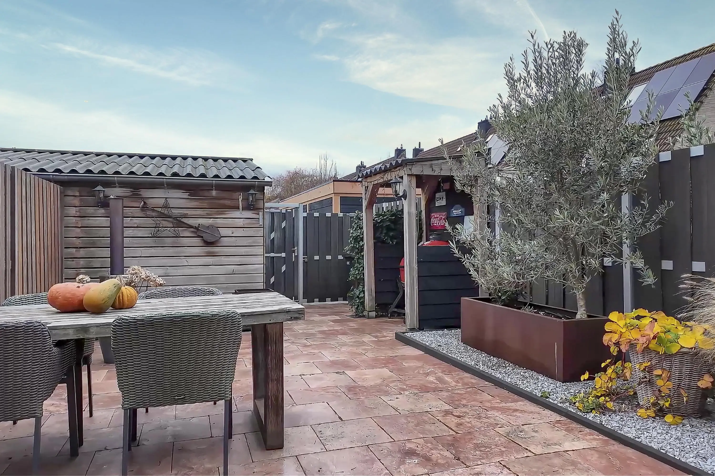 De keurig onderhouden achtertuin ligt gunstig op het zuidoosten waardoor u van veel zon geniet. Daarnaast beschikt de tuin over een praktische berging en een achterom.