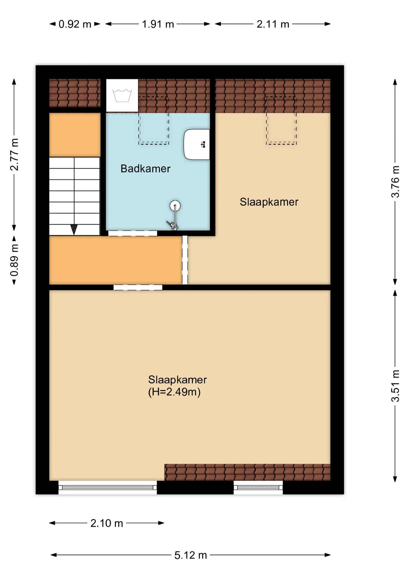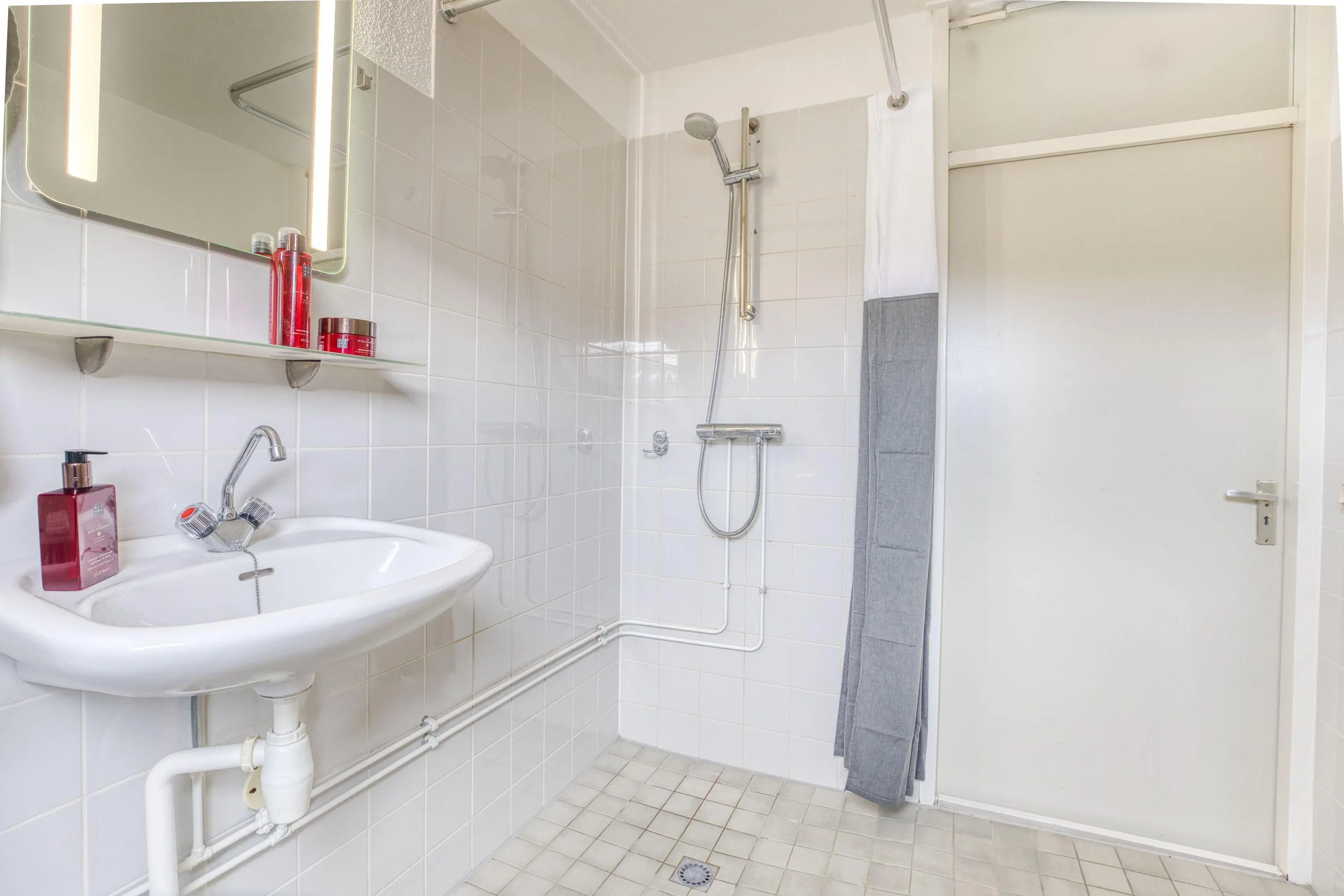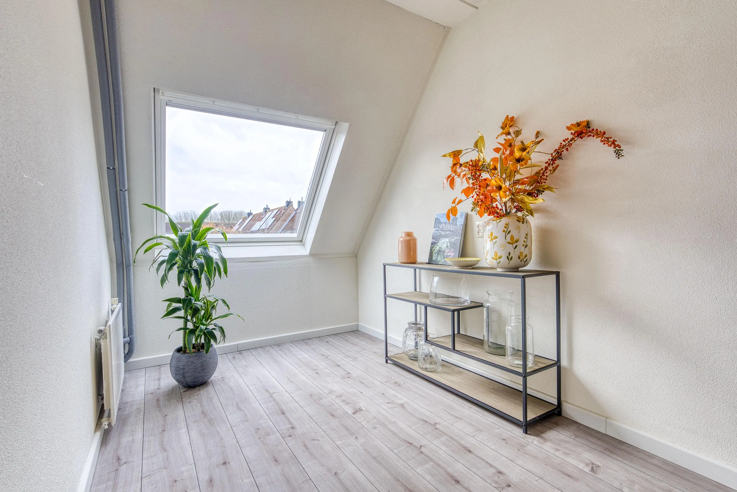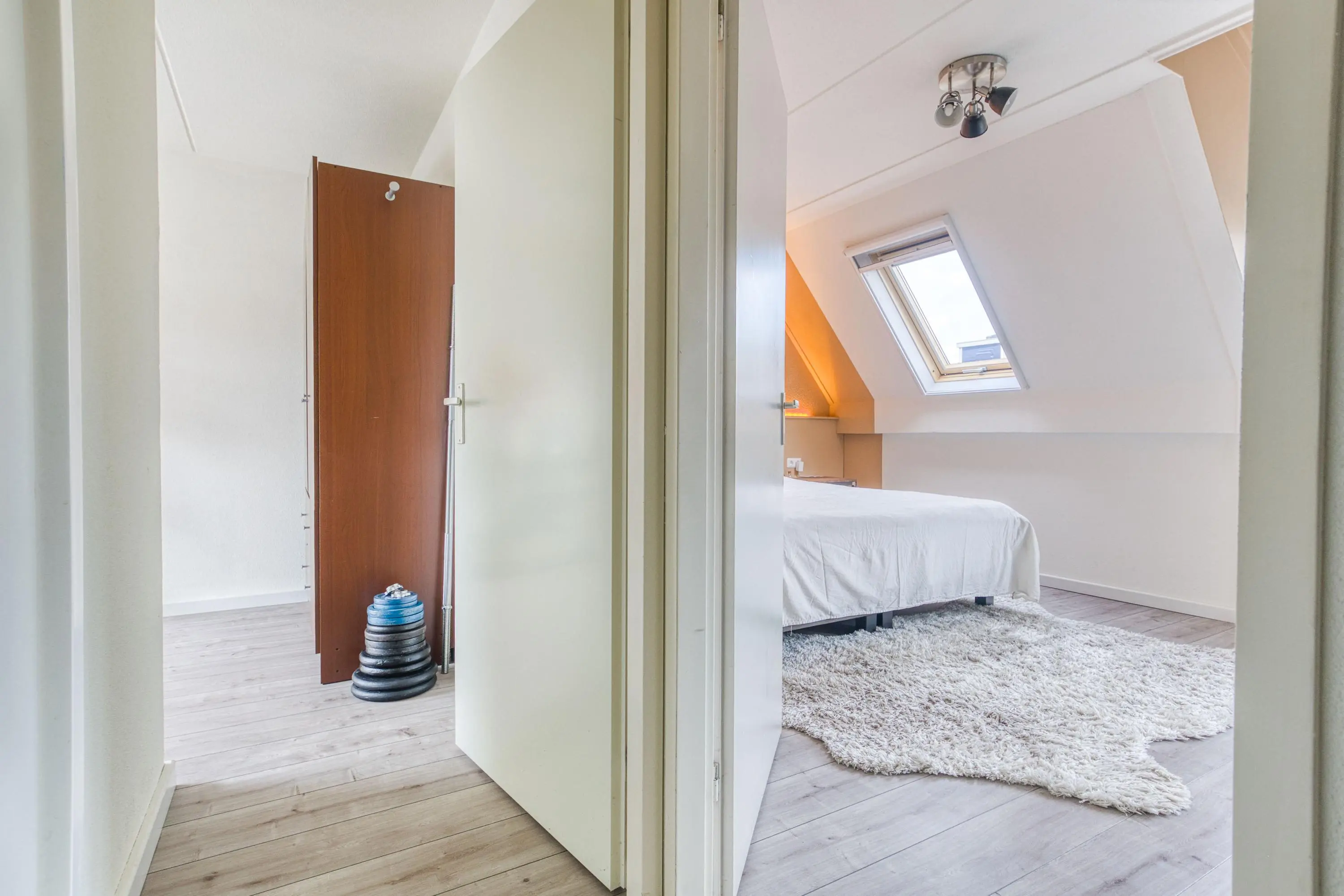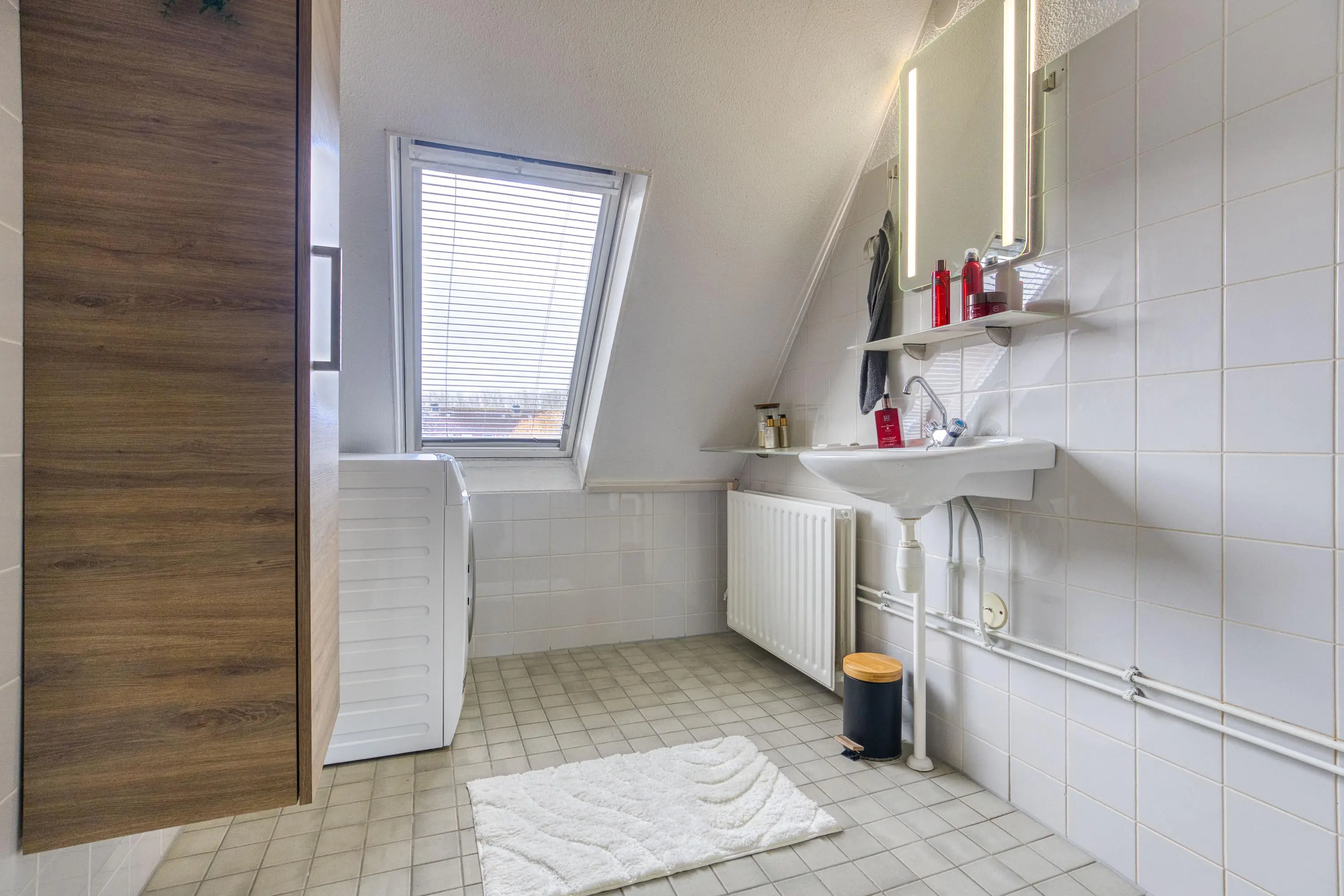 Vanaf de overloop heeft u toegang tot twee ruime slaapkamers. De badkamer is voorzien van een douche, wastafel, wasmachineaansluiting en een dakraam dat zorgt voor extra daglicht en optimale ventilatie.