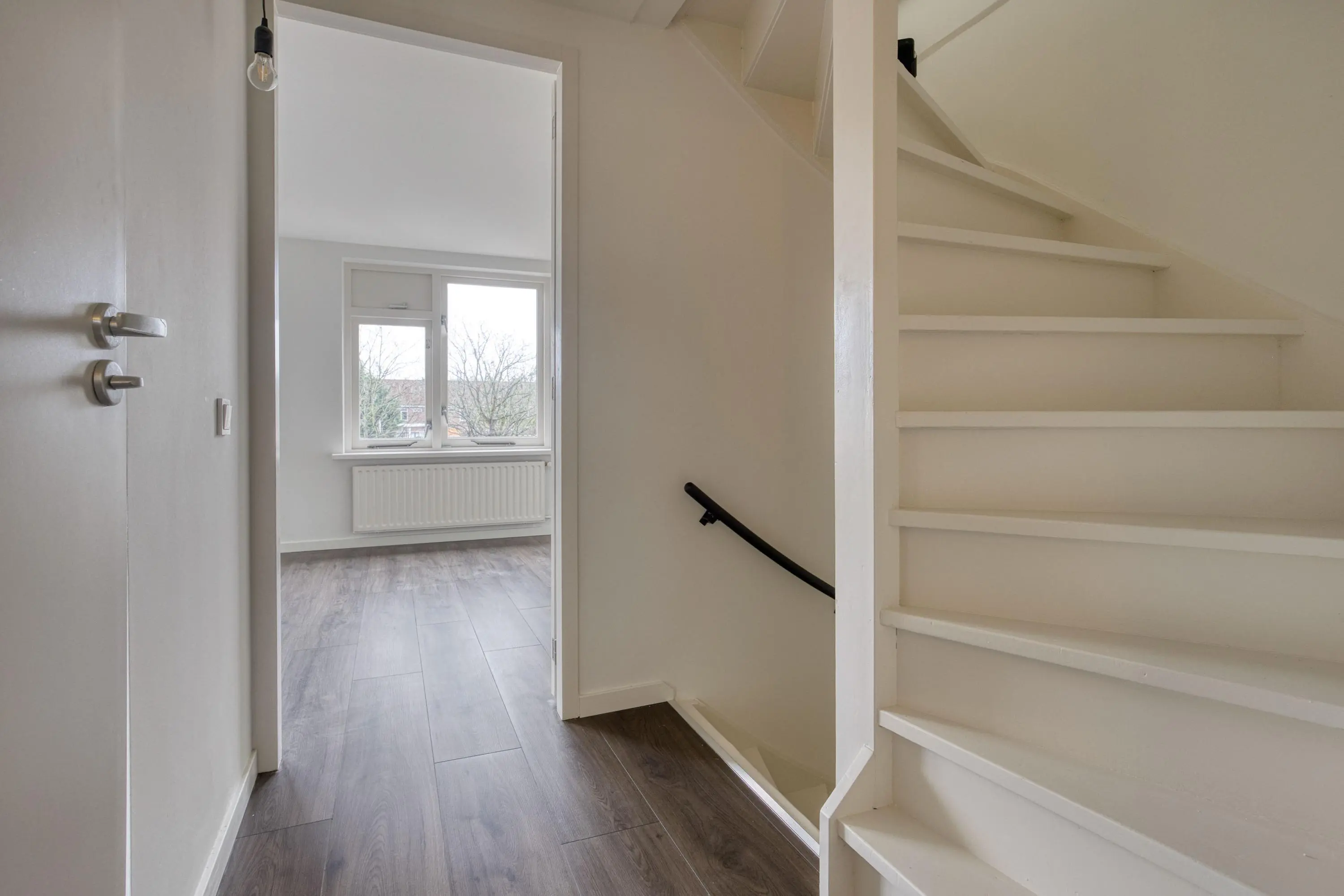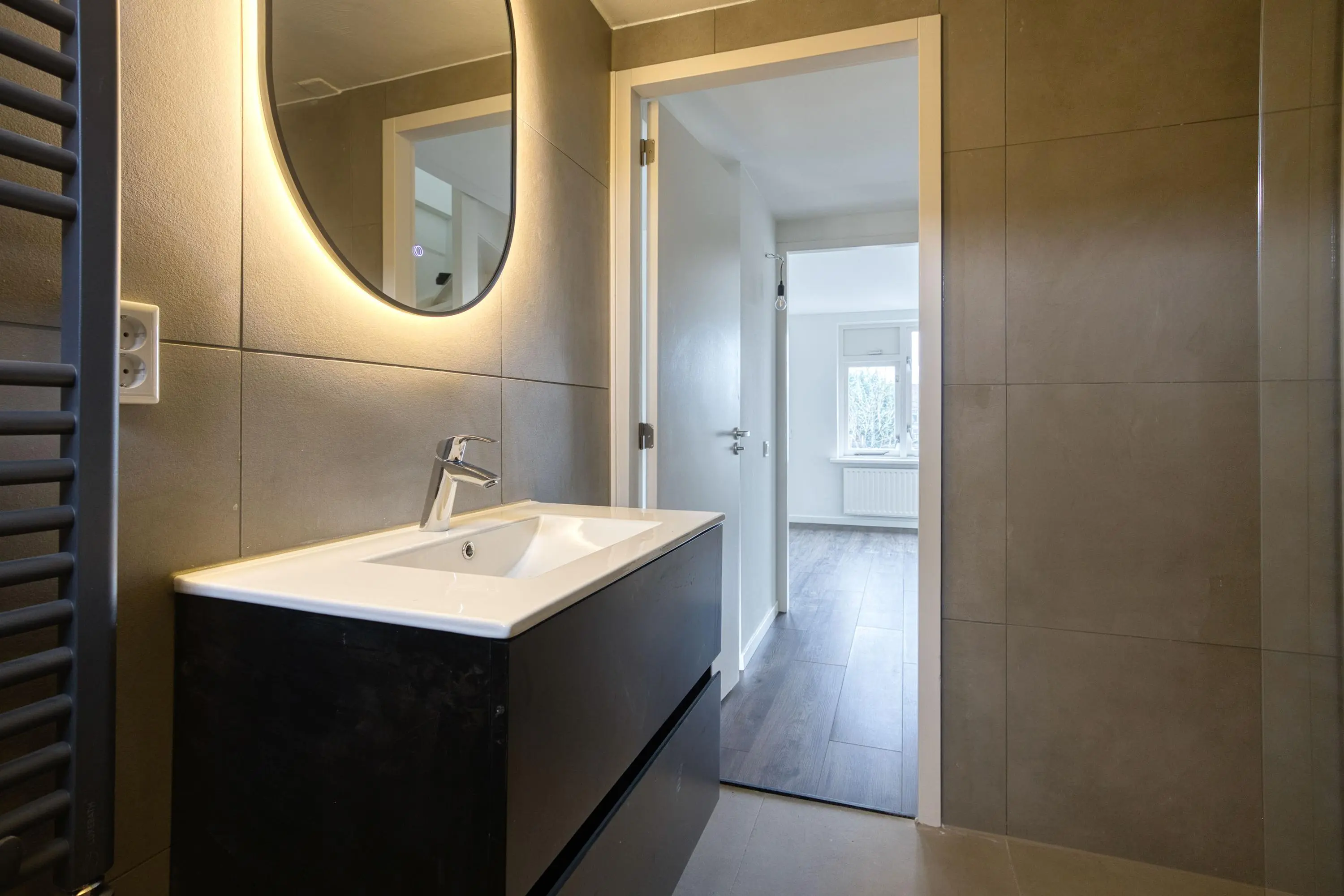 Op de eerste verdieping bevinden zich twee ruime slaapkamers (met mogelijkheid tot drie), een compleet vernieuwde badkamer in moderne grijs-witte tinten en een vaste trap naar boven. Dankzij de recht opgetrokken gevels is deze verdieping heerlijk ruim.