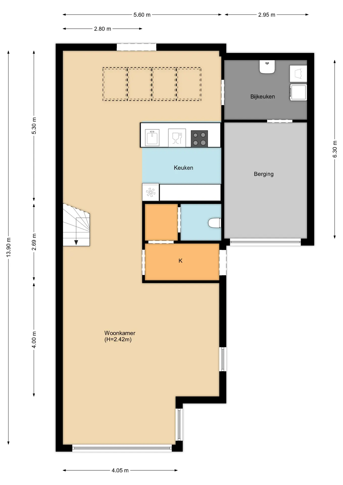Bij binnenkomst valt direct de royale leefruimte op. De uitbouw aan de achterzijde is voorzien van openslaande deuren over de volledige breedte, wat zorgt voor een prachtige lichtinval en een natuurlijke verbinding met de tuin. Door de grote raampartijen en het zicht op het water heb je binnen het gevoel van een serre – een plek waar je elk seizoen van kunt genieten. De vloerverwarming op de begane grond zorgt voor extra comfort, terwijl de ruime woonkamer en de open indeling uitnodigen tot ontspannen en genieten. Koken en leven De keuken is een echte eyecatcher: stijlvol, functioneel en van alle gemakken voorzien. Of je nu een snelle maaltijd bereidt of uitgebreid wilt koken voor vrienden en familie – dit is een plek waar je graag bent.