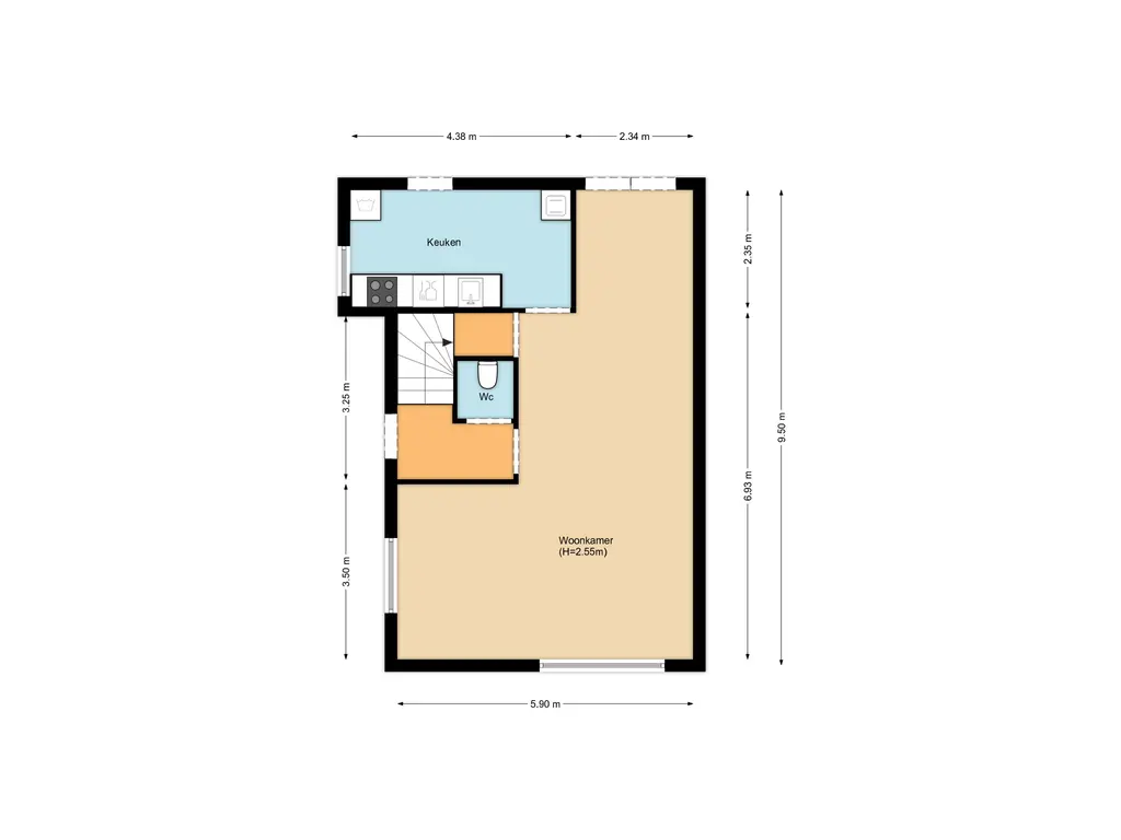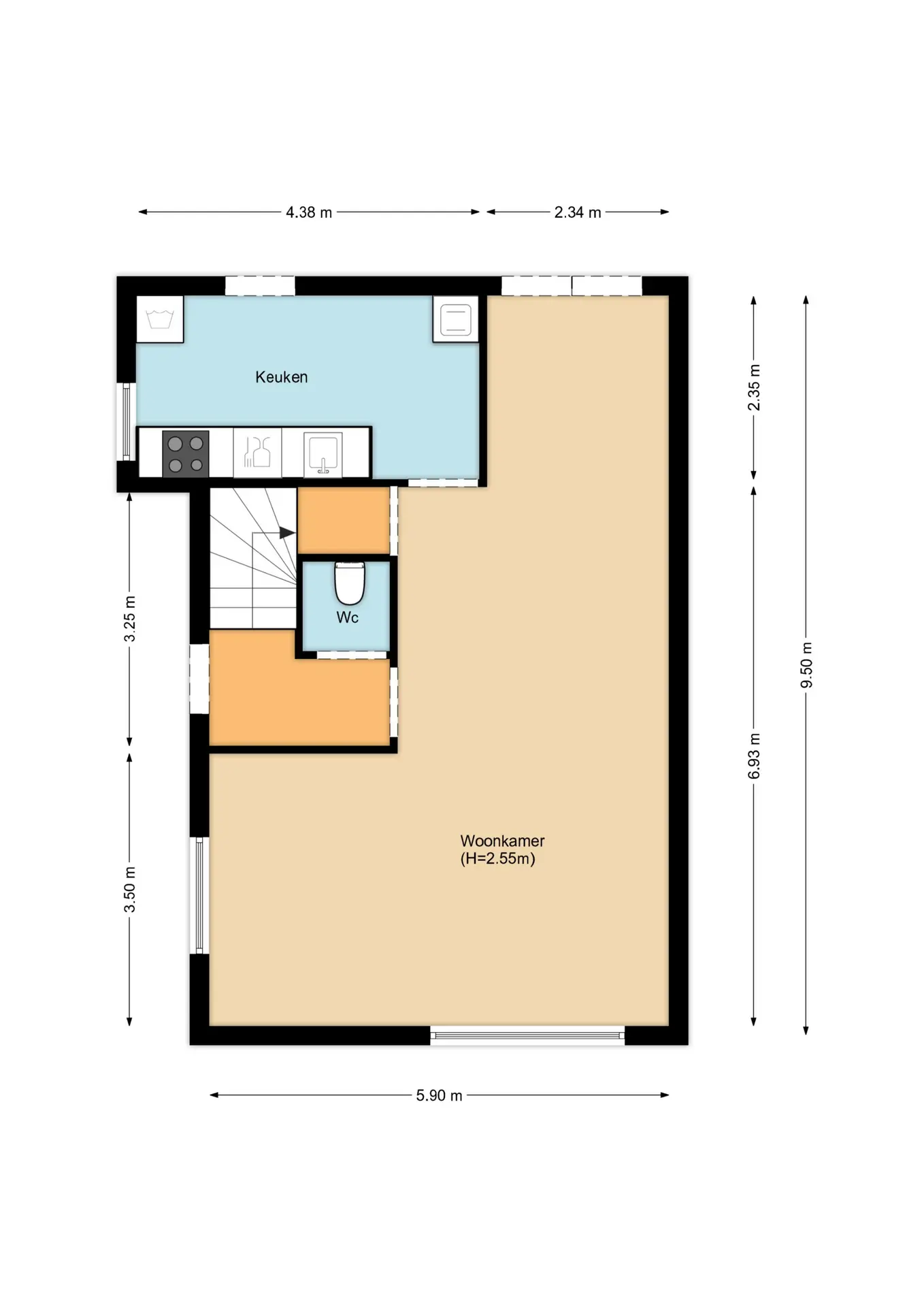 Woonkamer – Lichte doorzonkamer met straatzicht aan de voorzijde, royale eethoek bij de uitbouw én een lichtstraat die zorgt voor extra daglicht. Via de openslaande deuren loop je zo de tuin in.