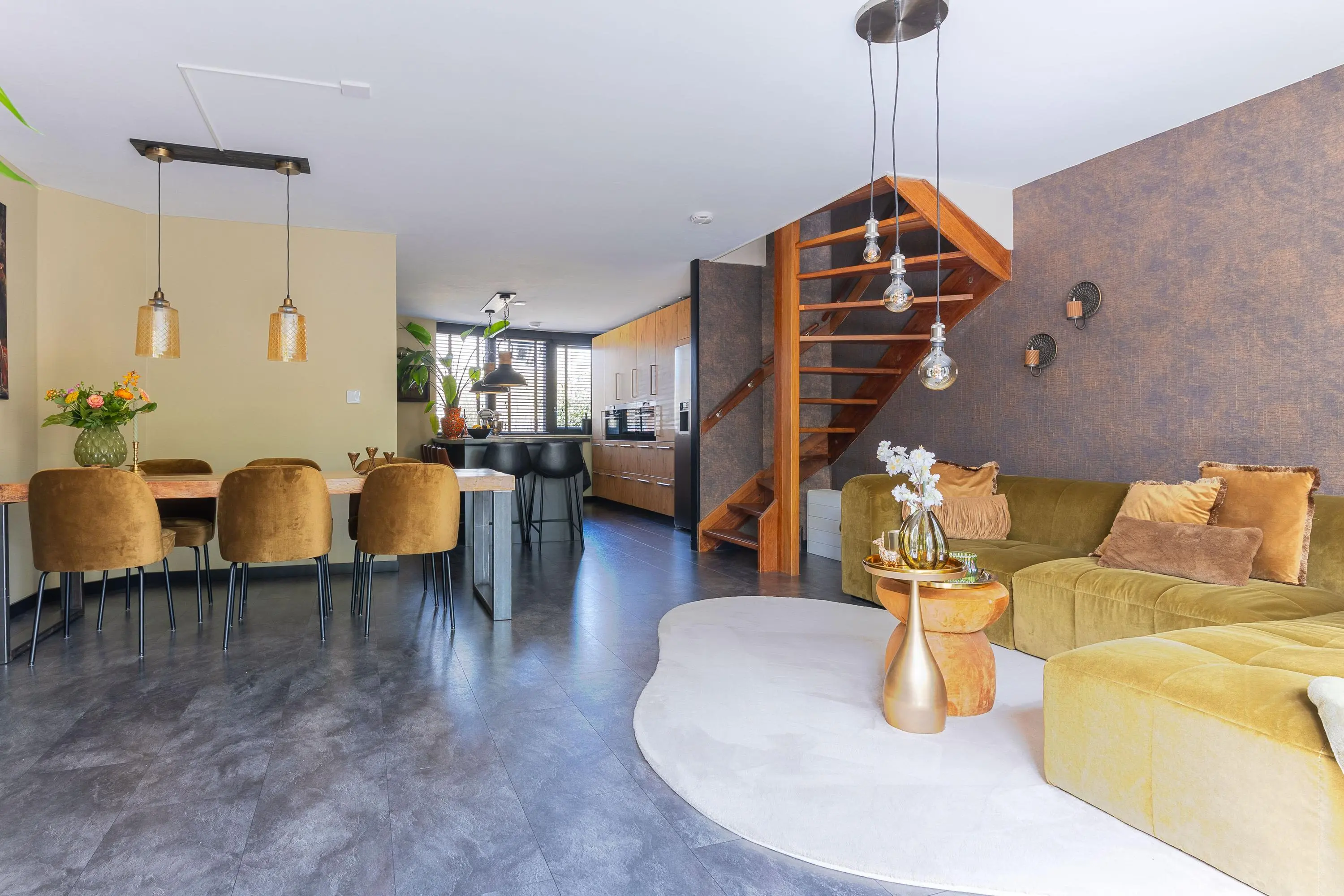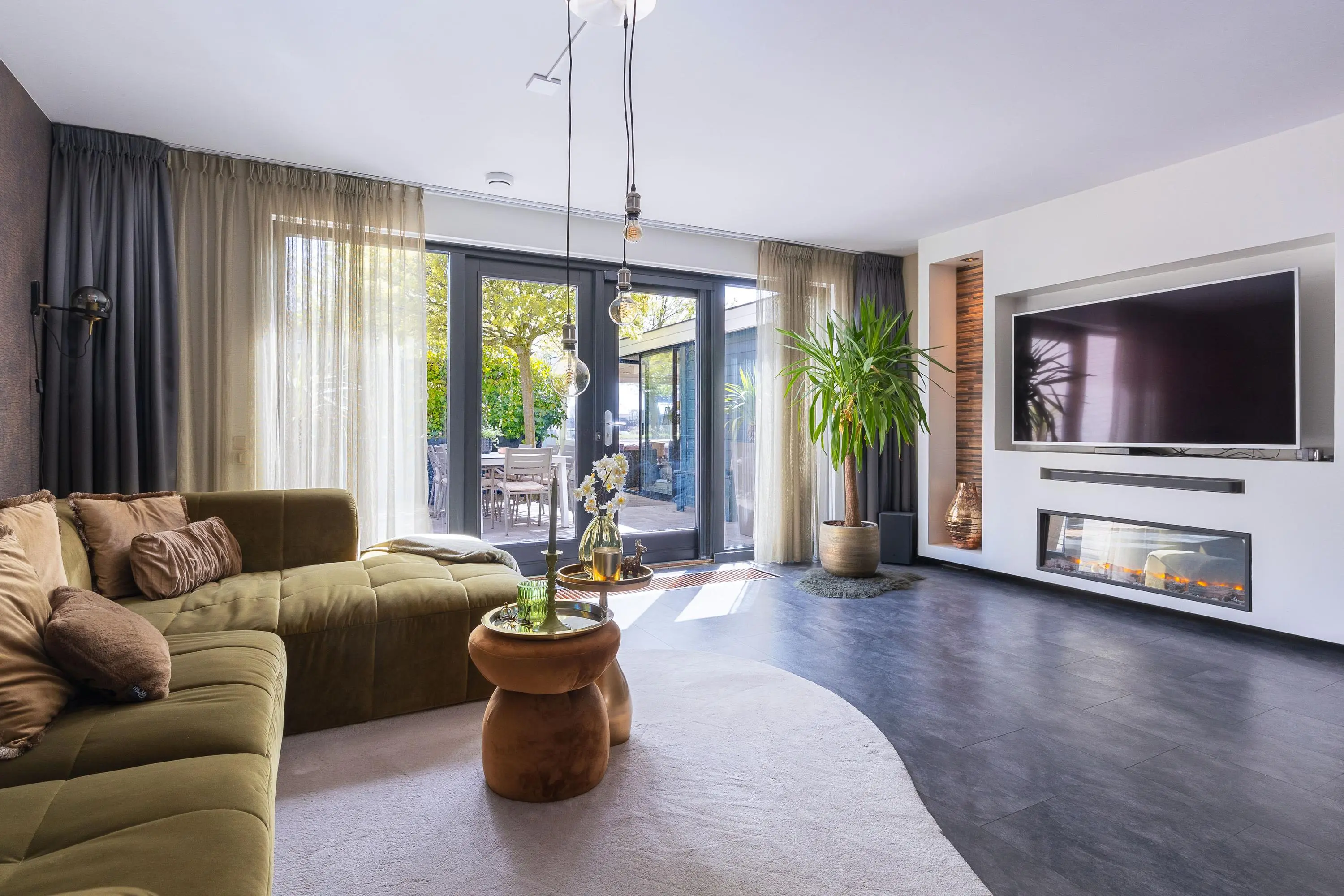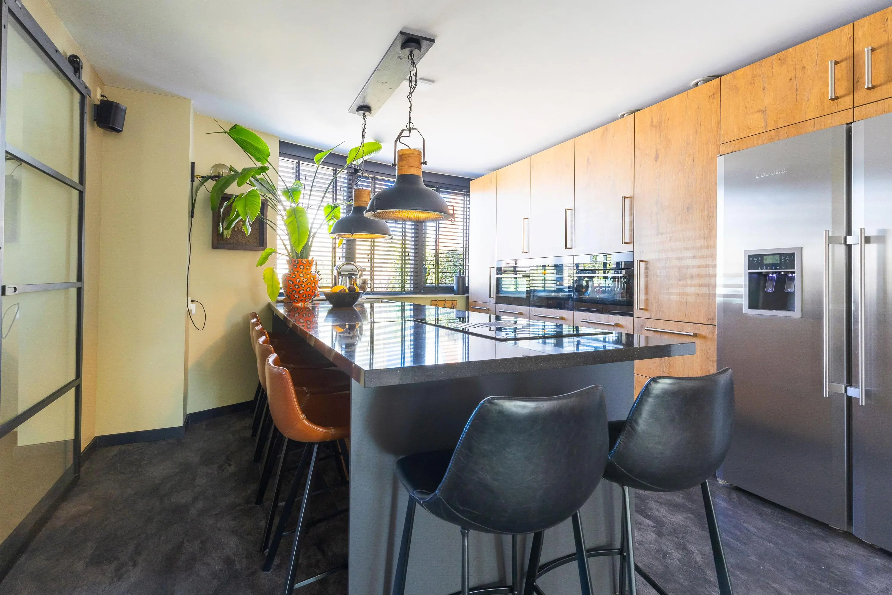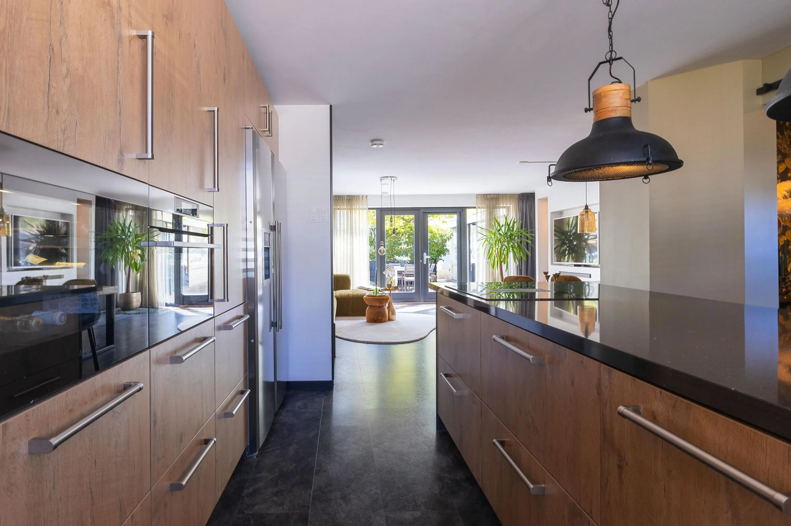De woonkamer is een echte eyecatcher, met een elektrische haard en cinewall. Dankzij de grote raampartijen en de openslaande deuren naar de zonnige tuin. De royale leefkeuken met kookeiland vormt het hart van de woning en is voorzien van diverse hoogwaardige inbouwapparatuur, waaronder een Amerikaanse koelkast en wijnkoeler. Een perfecte plek voor kookliefhebbers en gezellige avonden met vrienden – hier zijn al menig feestelijke momenten beleefd!
