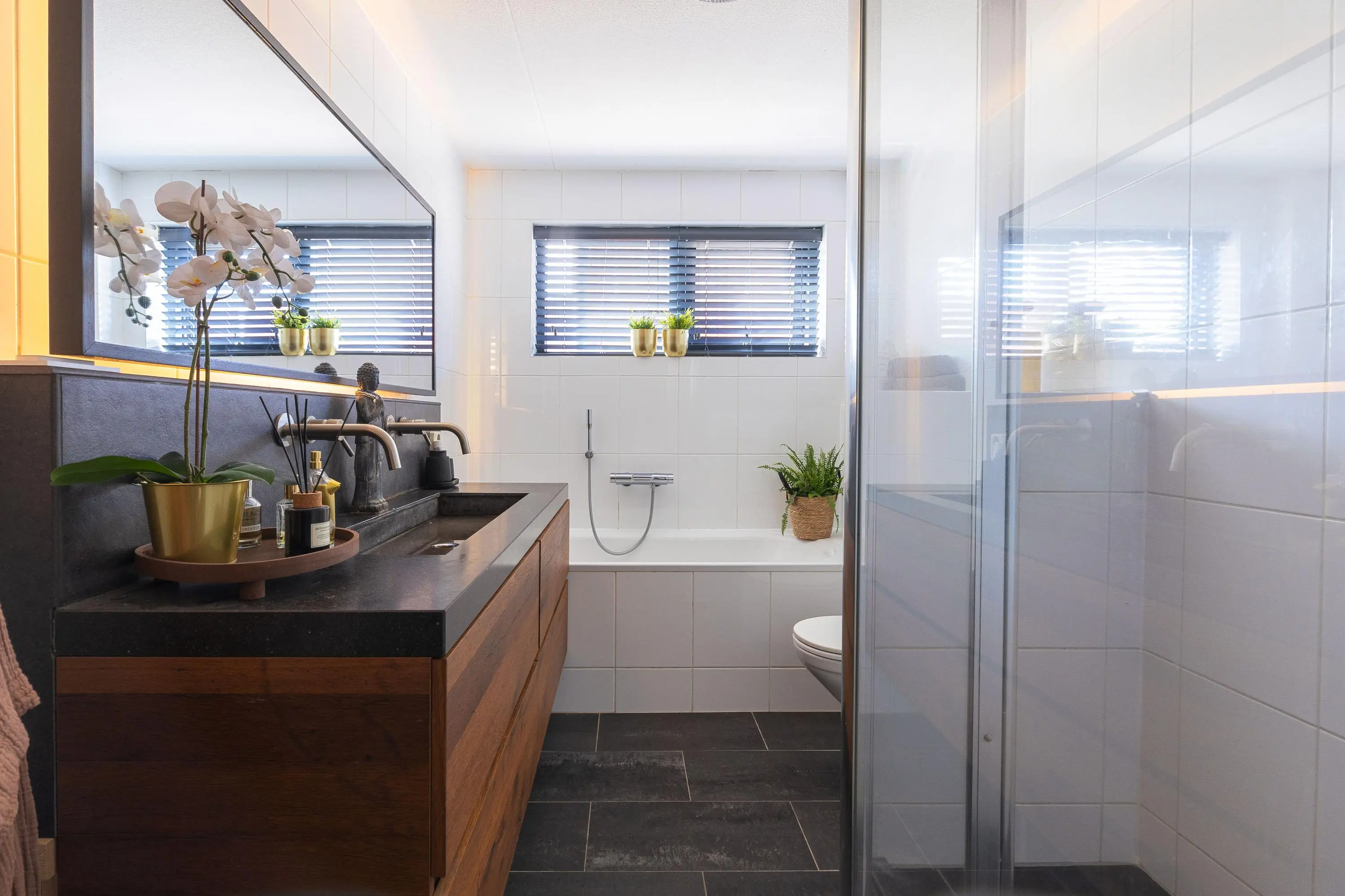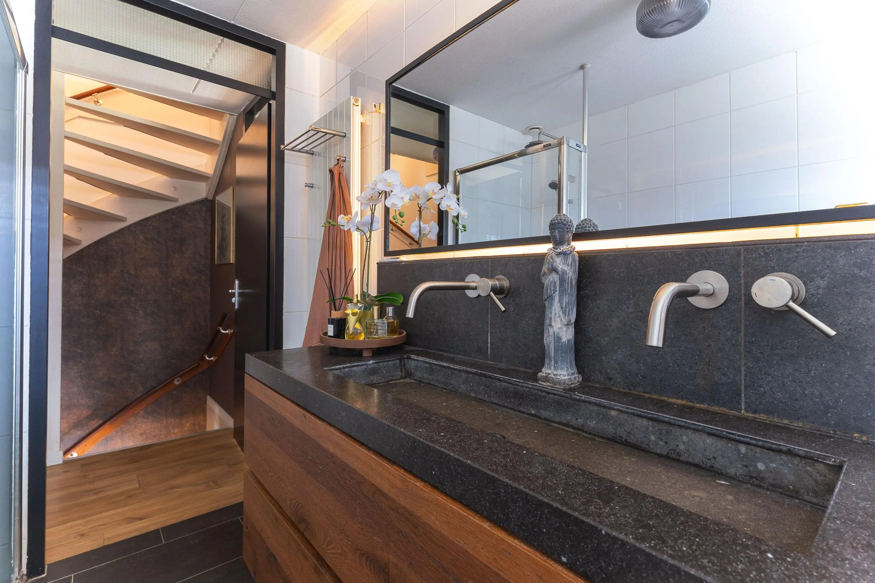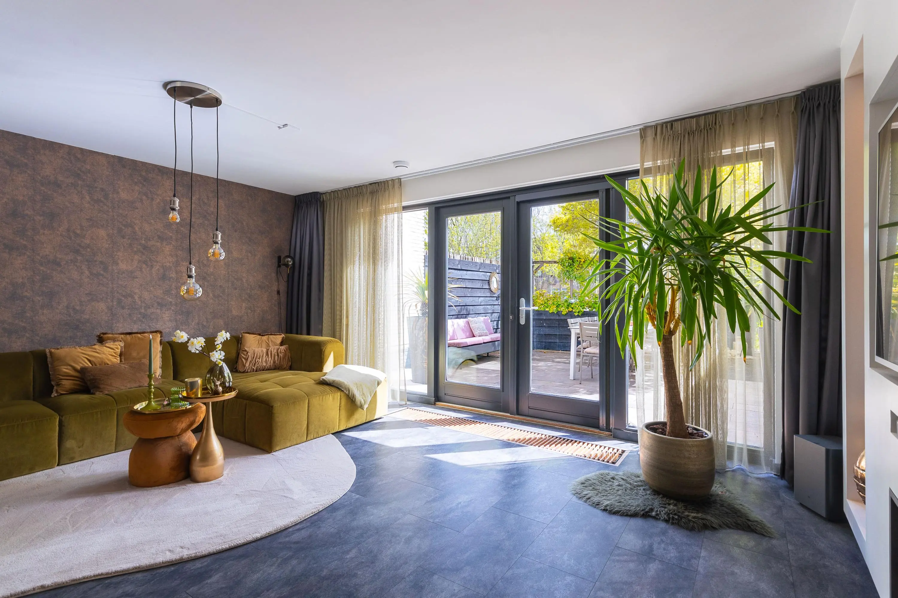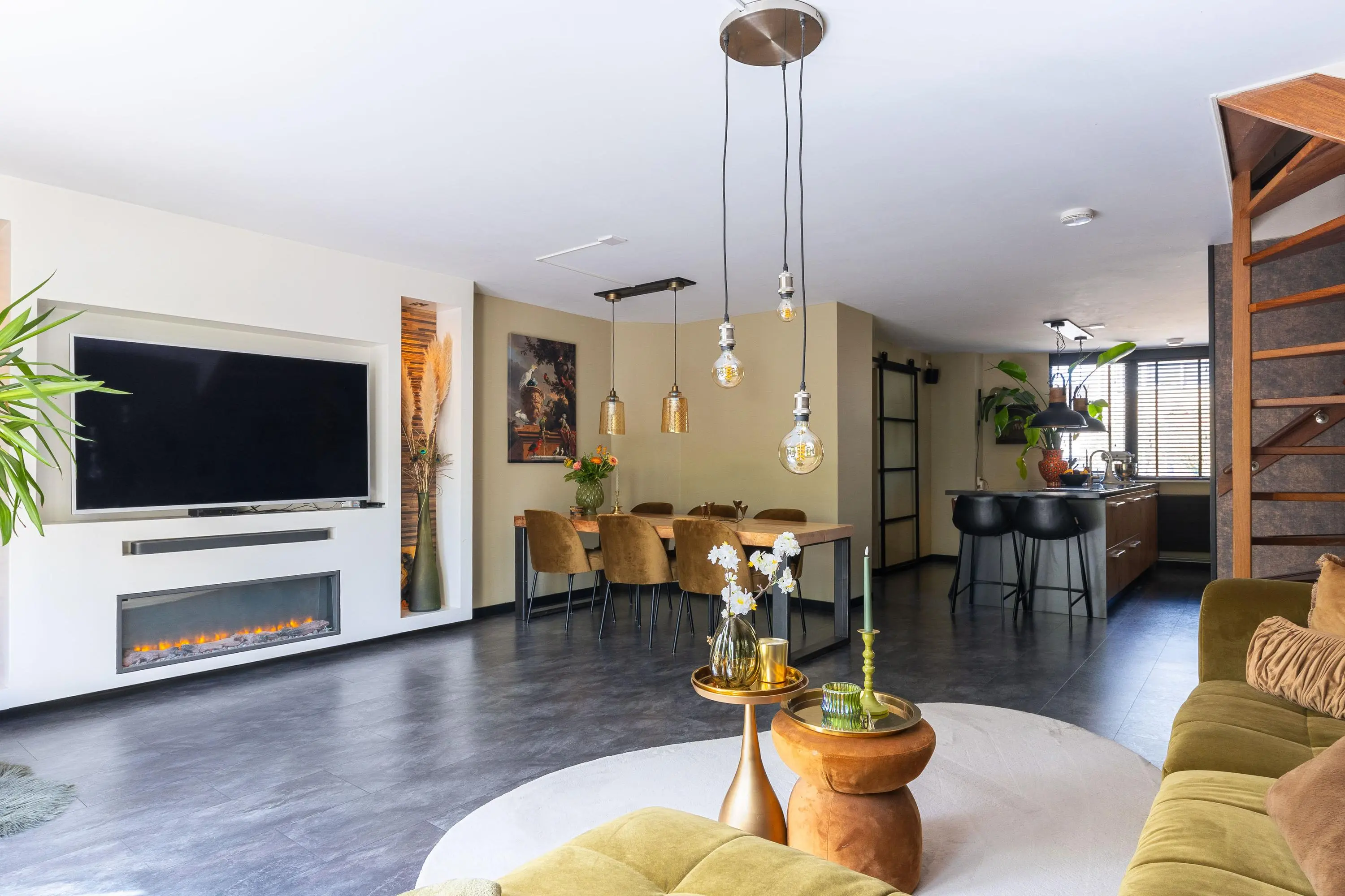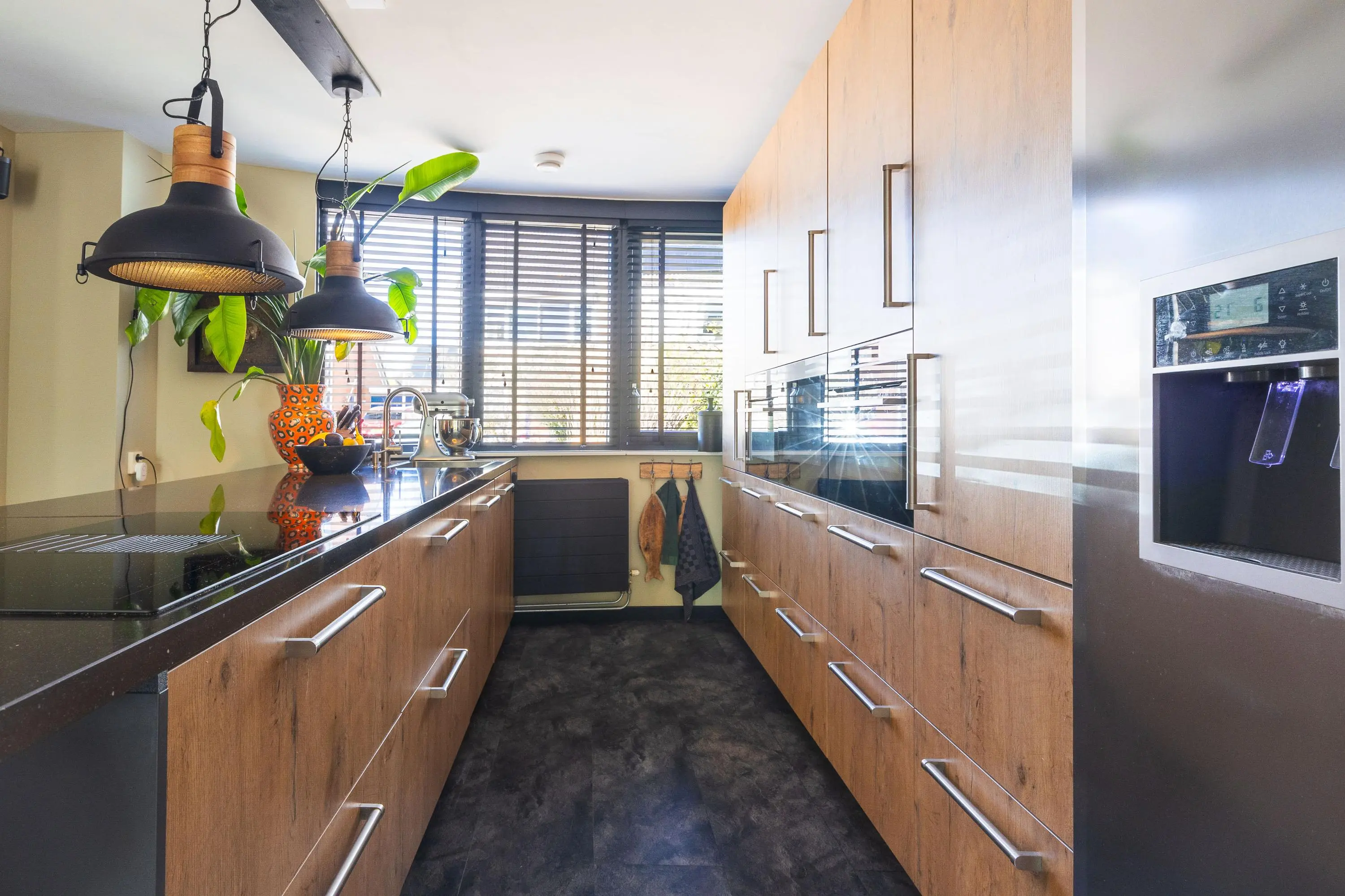 De woonkamer is een echte eyecatcher, met een elektrische haard en cinewall. Dankzij de grote raampartijen en de openslaande deuren naar de zonnige tuin. De royale leefkeuken met kookeiland vormt het hart van de woning en is voorzien van diverse hoogwaardige inbouwapparatuur, waaronder een Amerikaanse koelkast en wijnkoeler. Een perfecte plek voor kookliefhebbers en gezellige avonden met vrienden – hier zijn al menig feestelijke momenten beleefd!