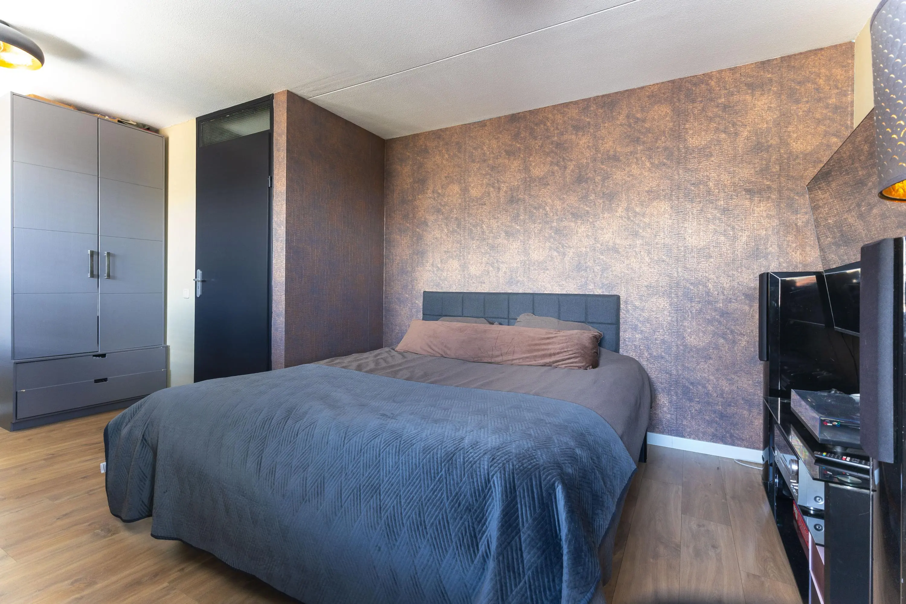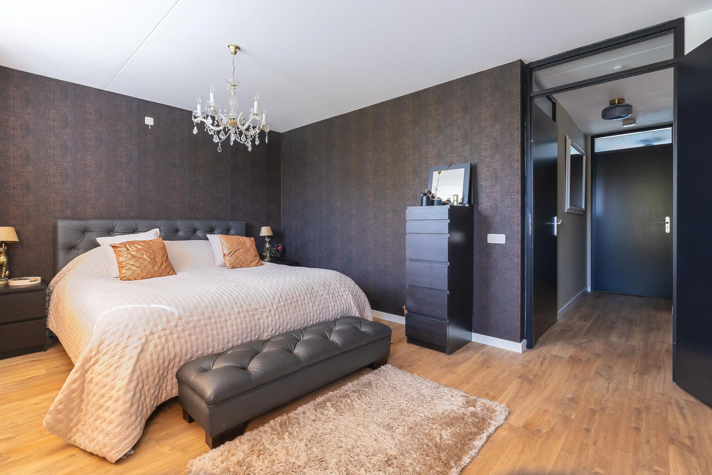 Via een vaste trap bereik je de zolderverdieping, die praktisch is ingedeeld in twee delen. Hier vind je de opstelling voor wasmachine en droger én een derde royale slaapkamer. Vanuit deze verdieping heb je toegang tot een groot balkon/dakterras op het zuiden.