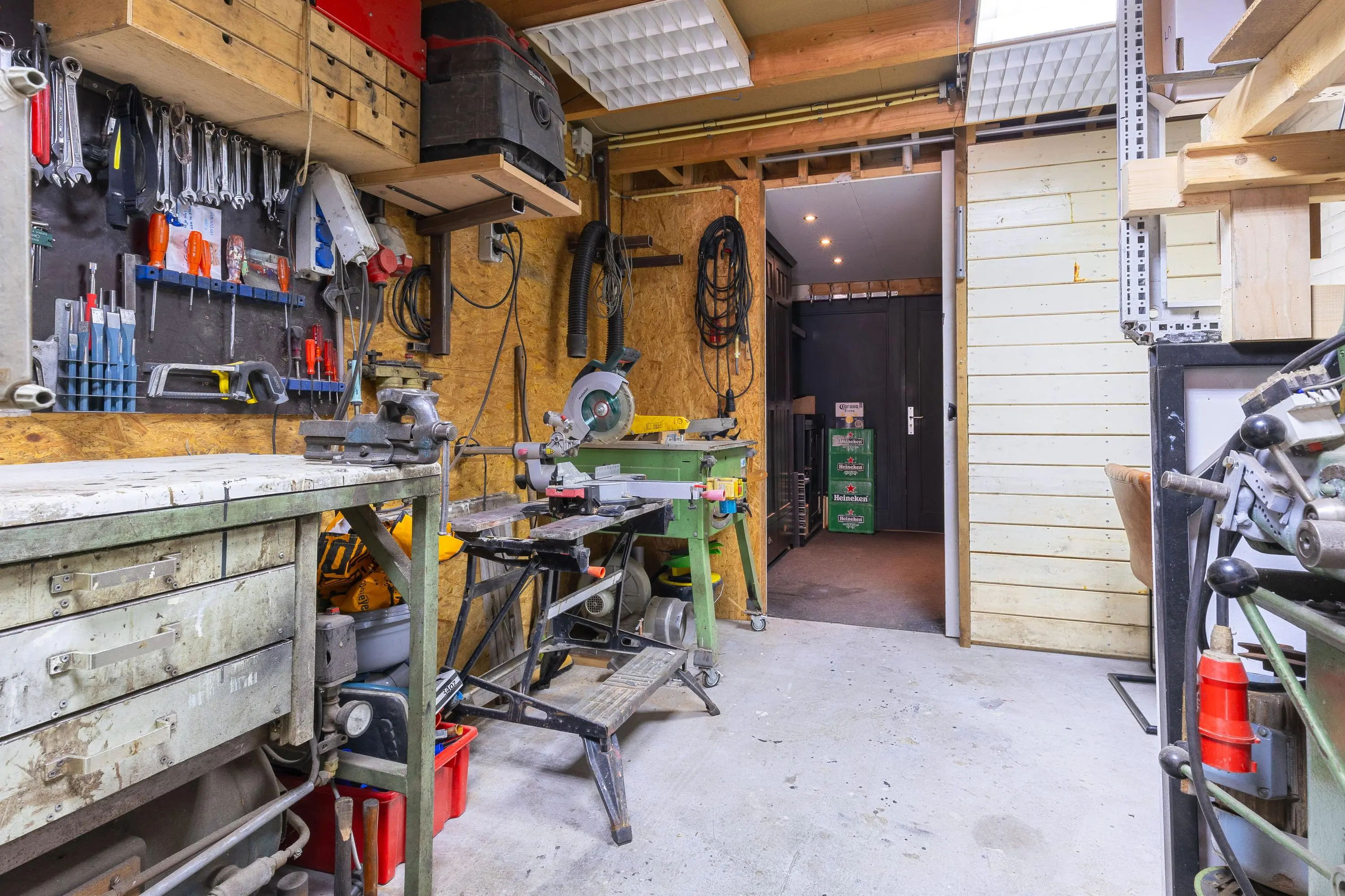 Via de entree kom je in de hal met meterkast en modern toilet. Vanuit hier heb je toegang tot de inpandige (verlengde) garage, die doorloopt naar de sfeervolle, afsluitbare veranda – een heerlijke plek waar je al vroeg in het voorjaar en tot laat in het najaar kunt genieten met familie en vrienden.