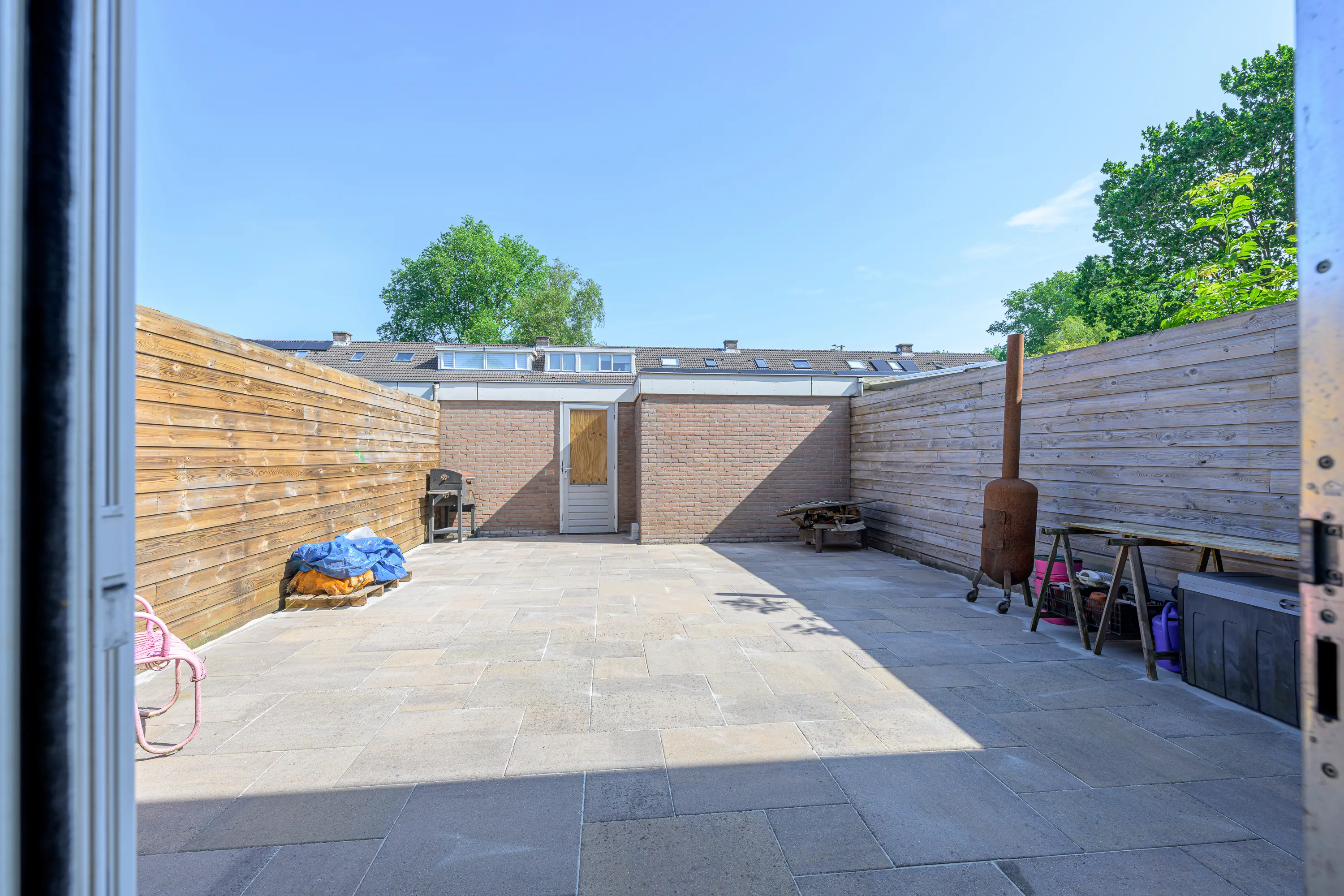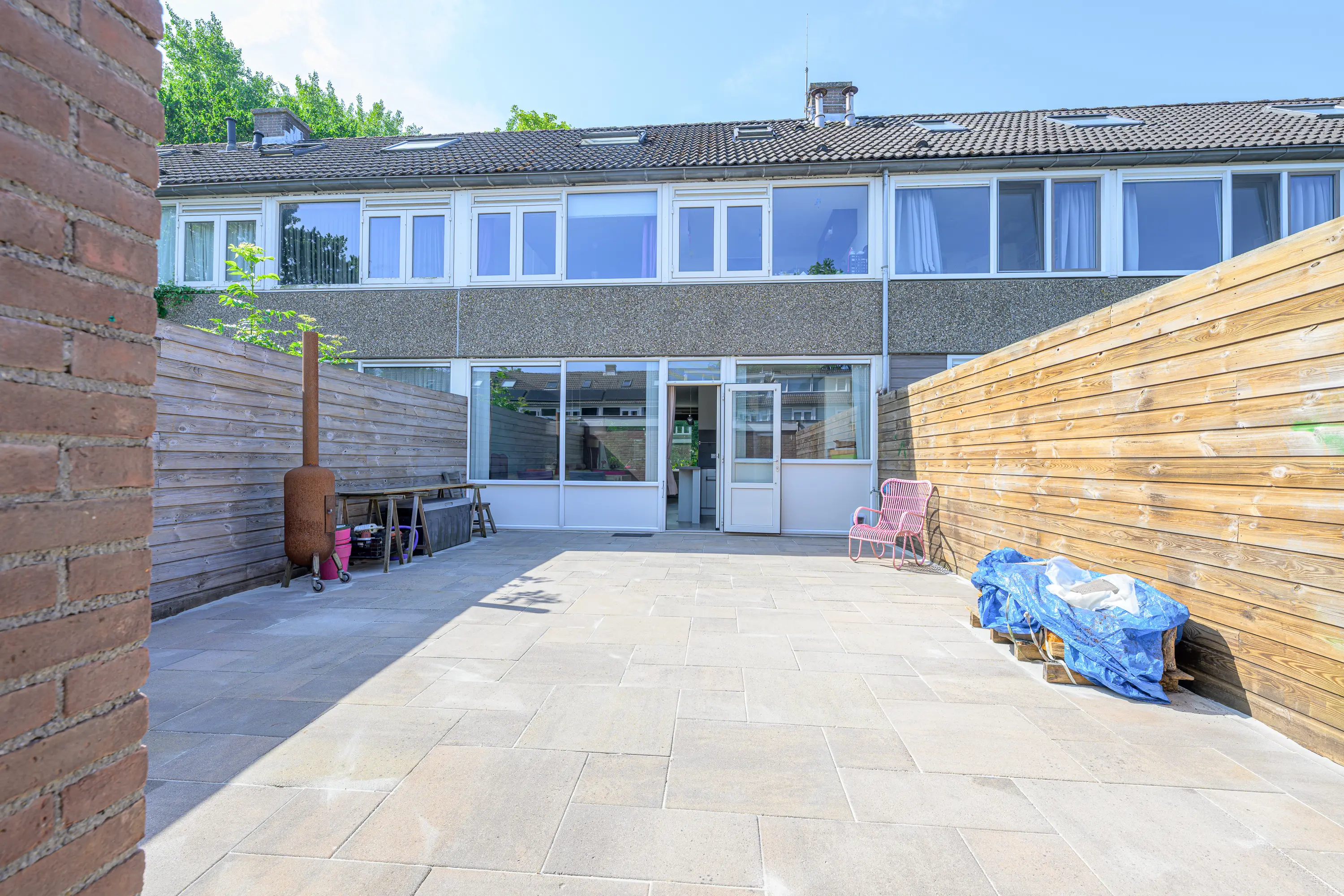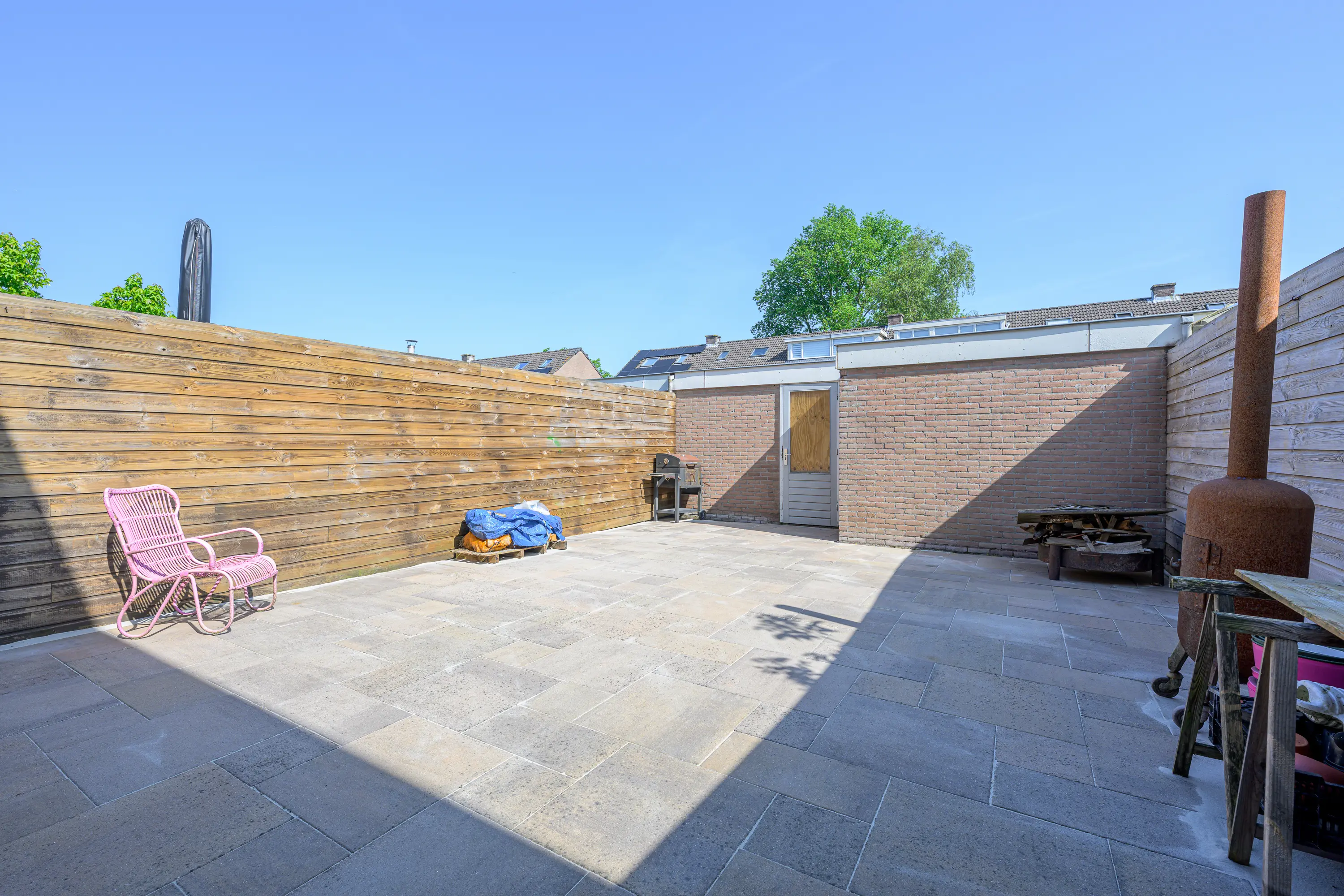 Tuin: De achtertuin is ruim, geheel voorzien van bestrating en gelegen op het noorden. Door de diepte van de achtertuin kunt u hier tot laat van het zonnetje genieten. U kunt de tuin via een achterom door de berging bereiken en dat is natuurlijk erg fijn. Vanuit de berging heeft u toegang tot de stenen garage. De garage en berging zijn aan elkaar verbonden en zo is er een zeer grote ruimte ontstaan voor het opbergen van spullen, stallen van motoren of het beoefenen van hobby’s.