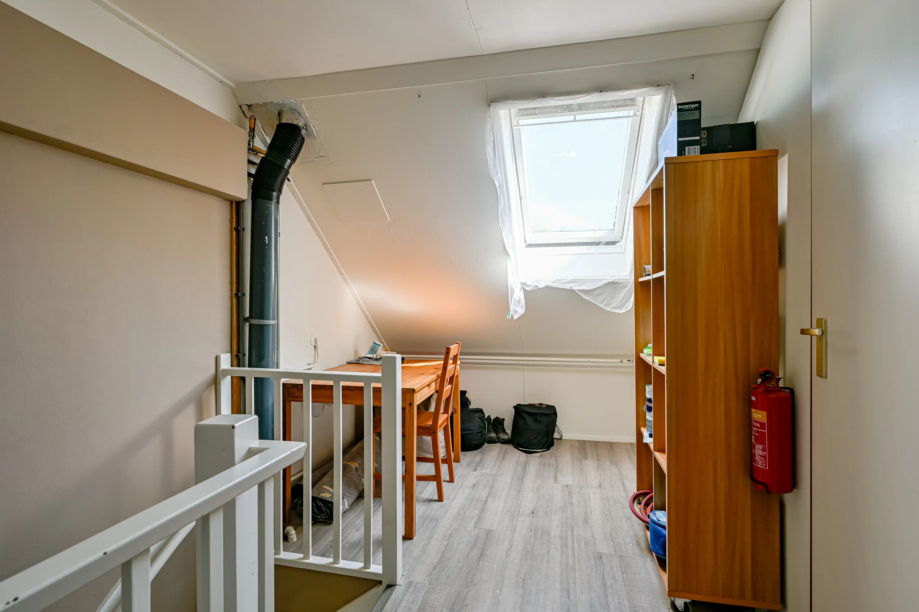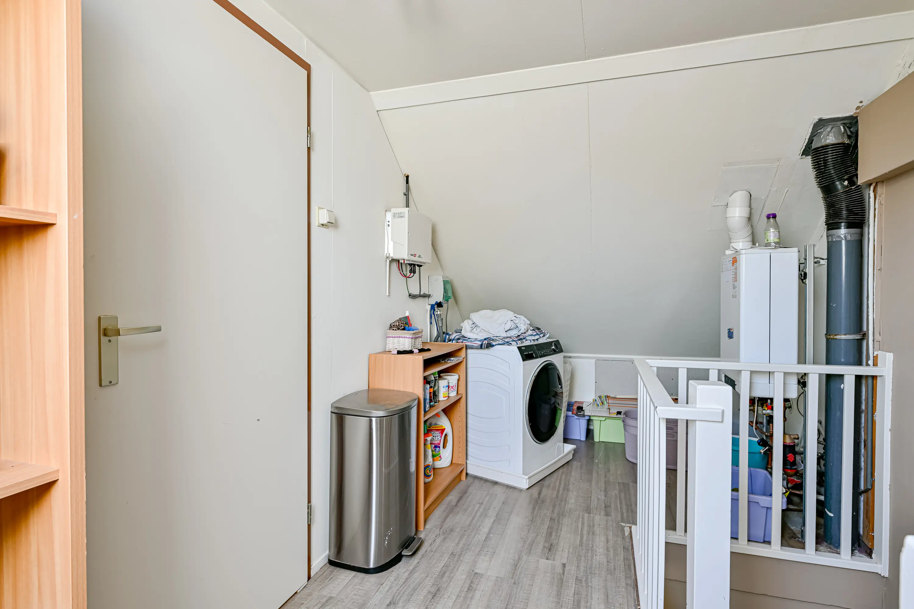 Tweede verdieping : Via de vaste trap bereikt u de tweede verdieping. Hier vindt u een voorzolder en de vierde slaapkamer. Op de voorzolder is de Cv-ketel geplaatst. Ook is daar ruimte voor een wasmachine en droger. De vierde slaapkamer is ruim en door het grote dakraam heerlijk licht.