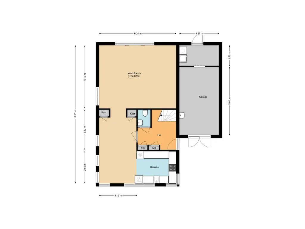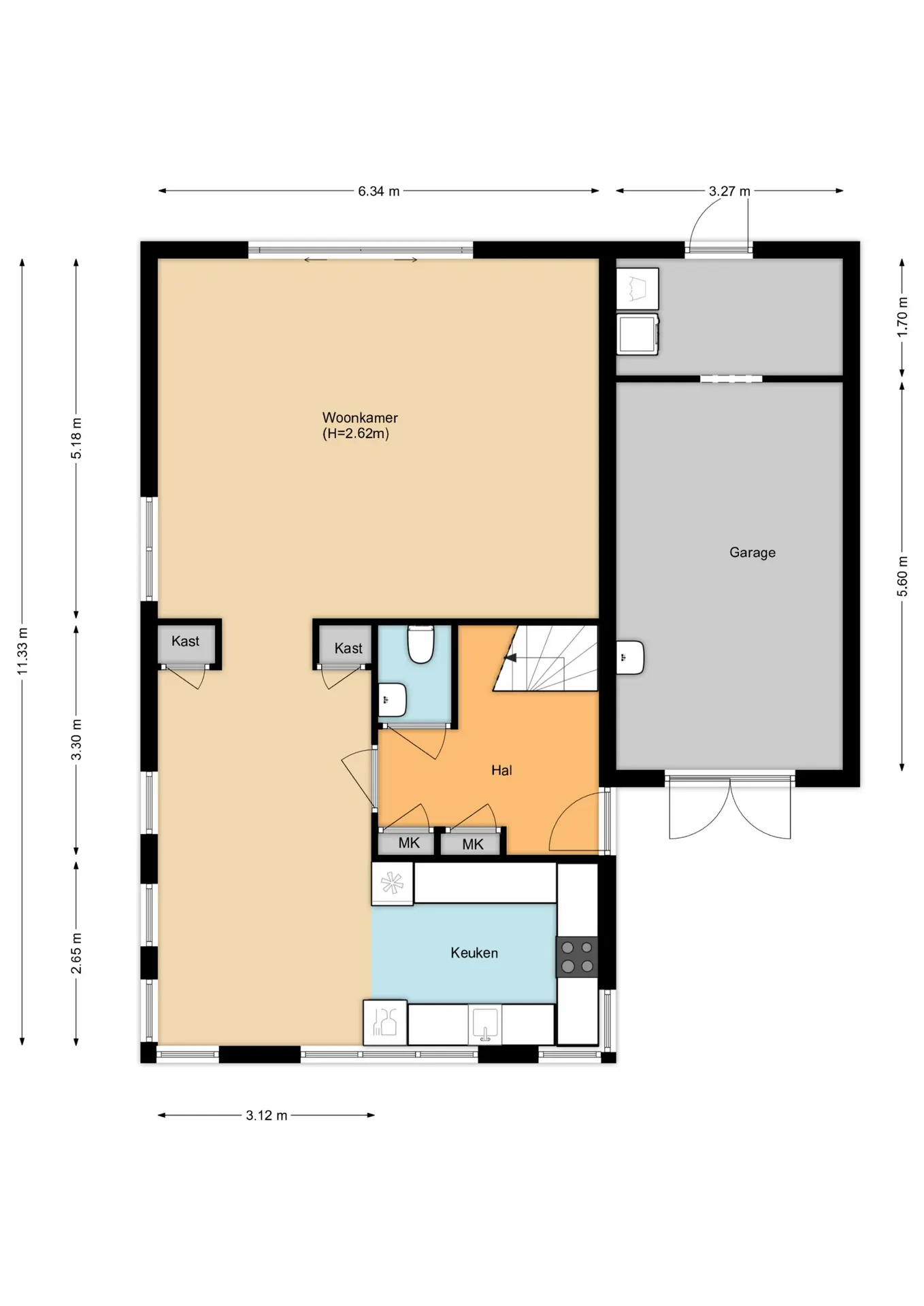 Via de zij-entree komt u binnen in de hal, met toegang tot een modern toilet, meterkast, trapopgang en toegang tot de garage. De garage is verdeeld in een gedeelte berging een bijkeuken met aansluitingen voor de wasmachine en de droger. Aan de voorzijde de woonkeuken met keukenblok in U-vormige opstelling met vaatwasser, koelkast, vriezer, oven, inductie kookplaat, afzuigkap en een Quooker, aansluitend een mooie ruimte voor een grote eettafel, ruime en lichte woonkamer met grote schuifpui naar de achtertuin. De achtertuin is gelegen op zonnige zuid-westen zeer graai aangelegd met diverse terrassen en steiger aan het water met uitzicht over het park. De begane grond is voorzien van een PVC vloer met een vloerverwarming.