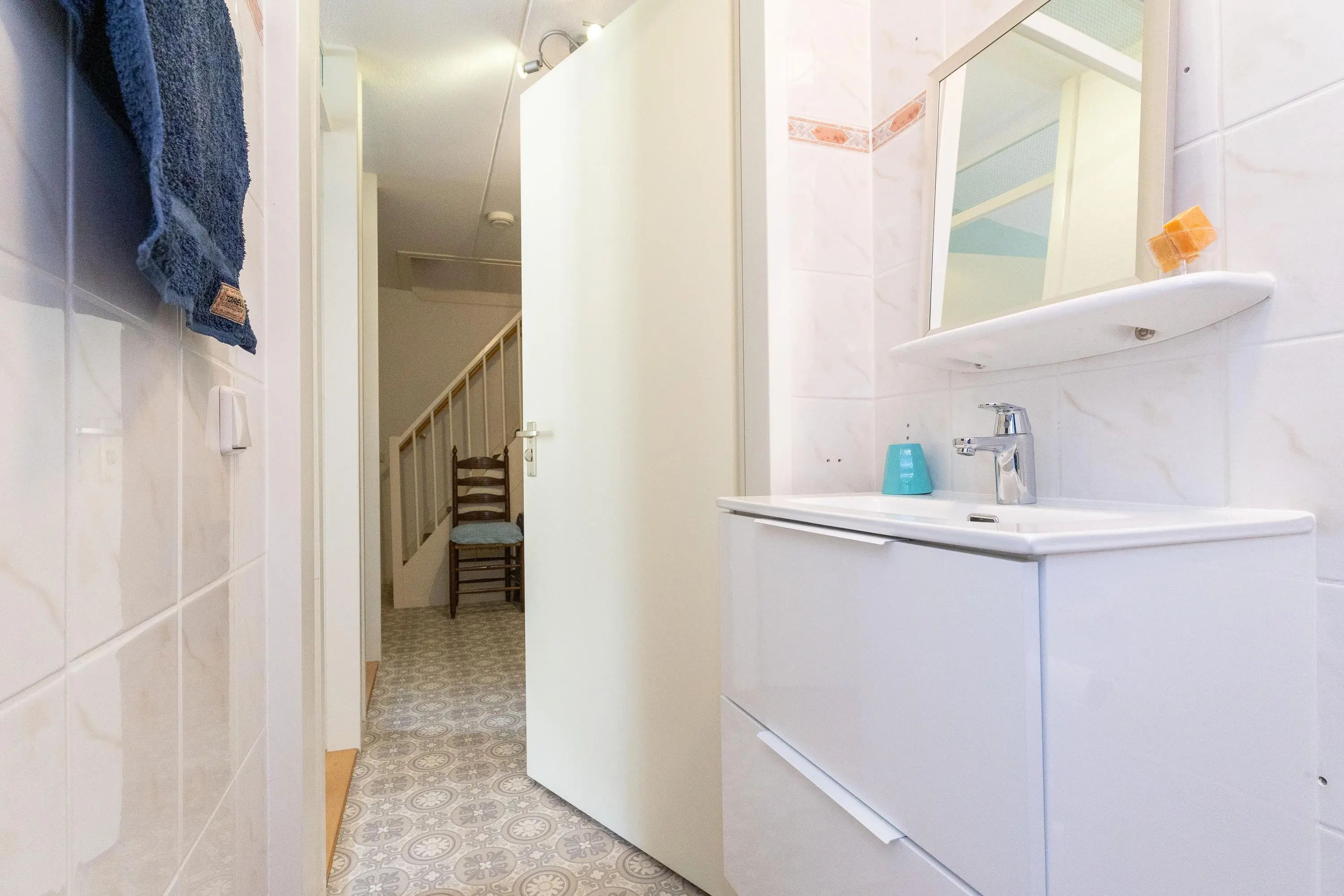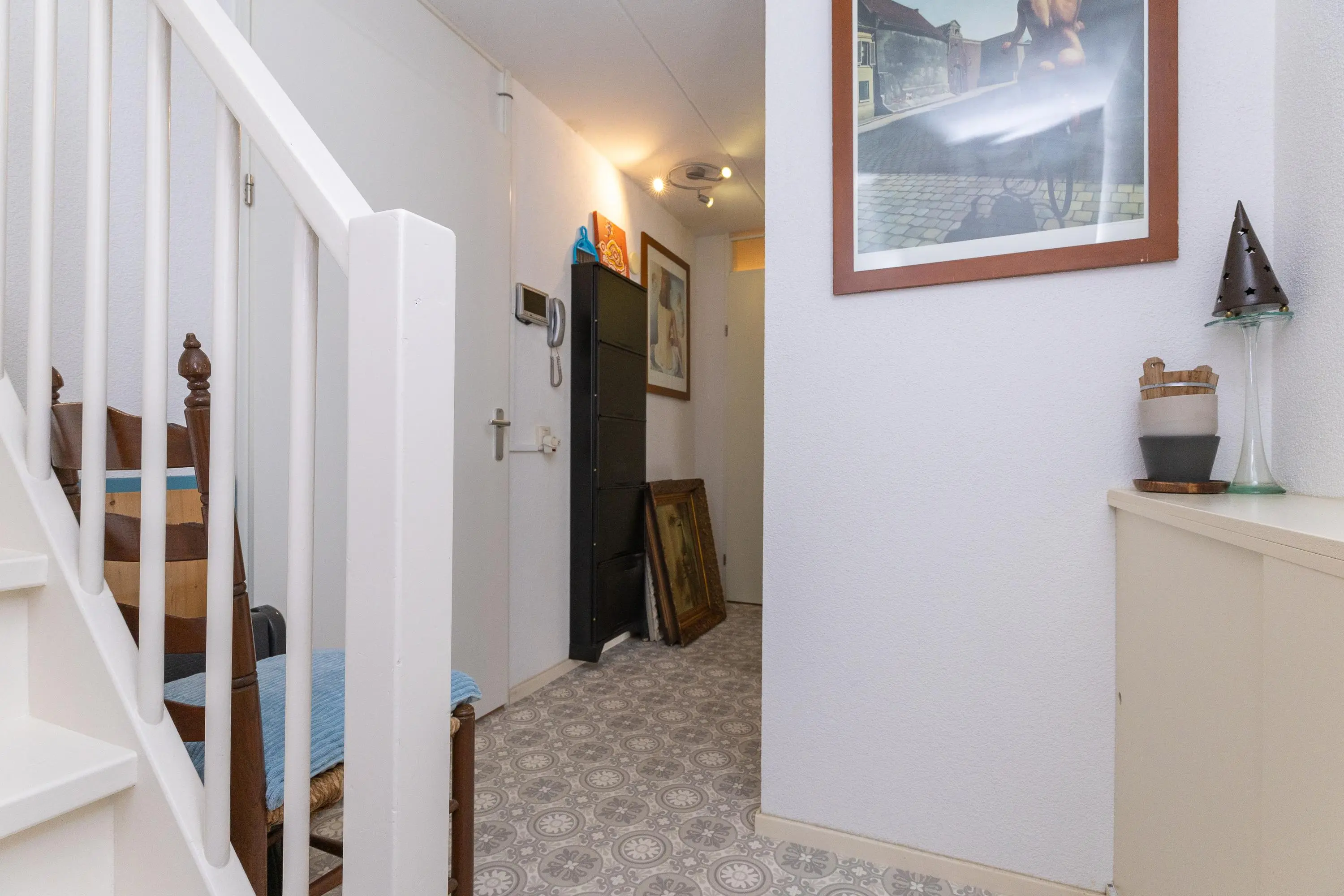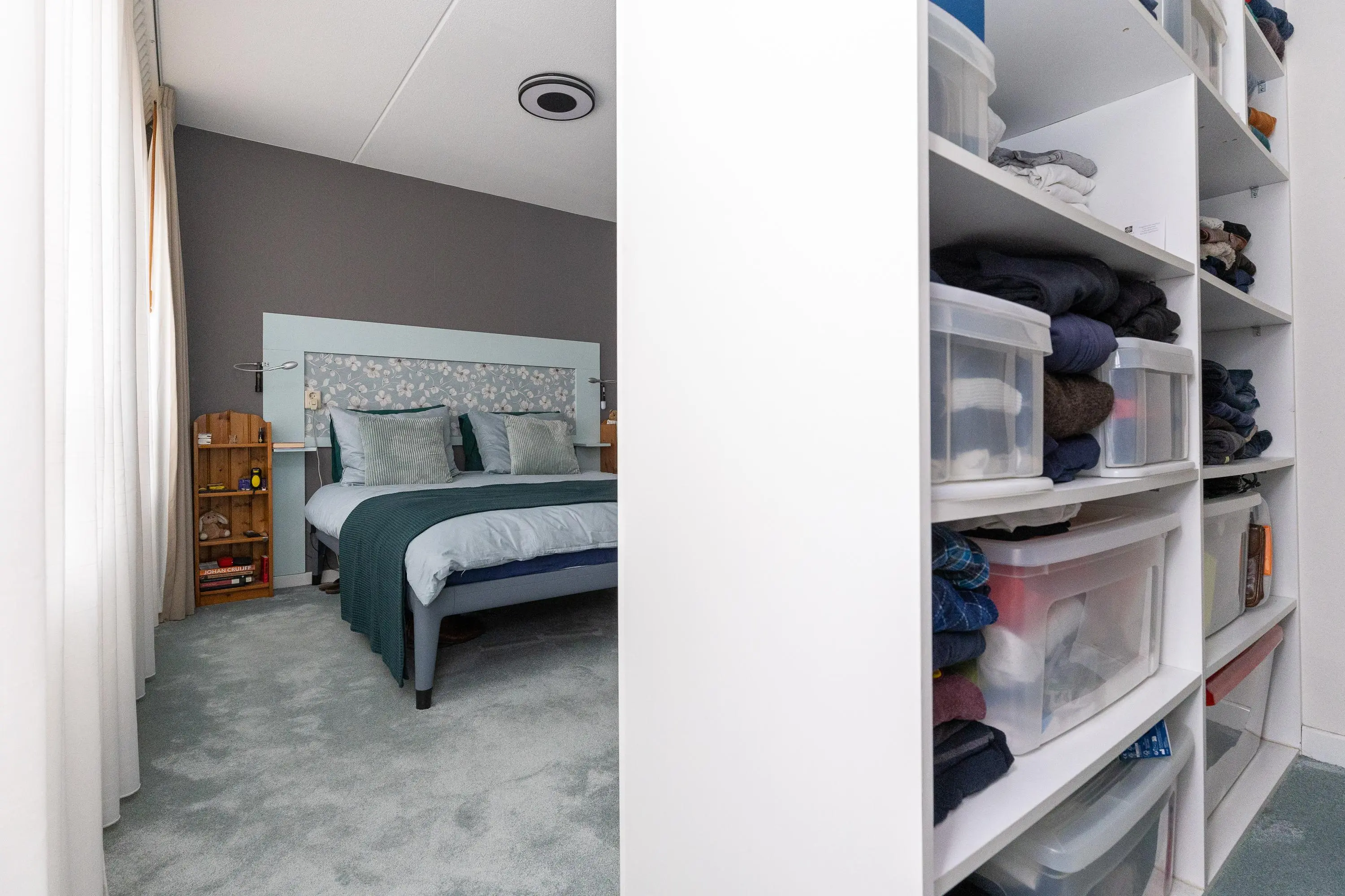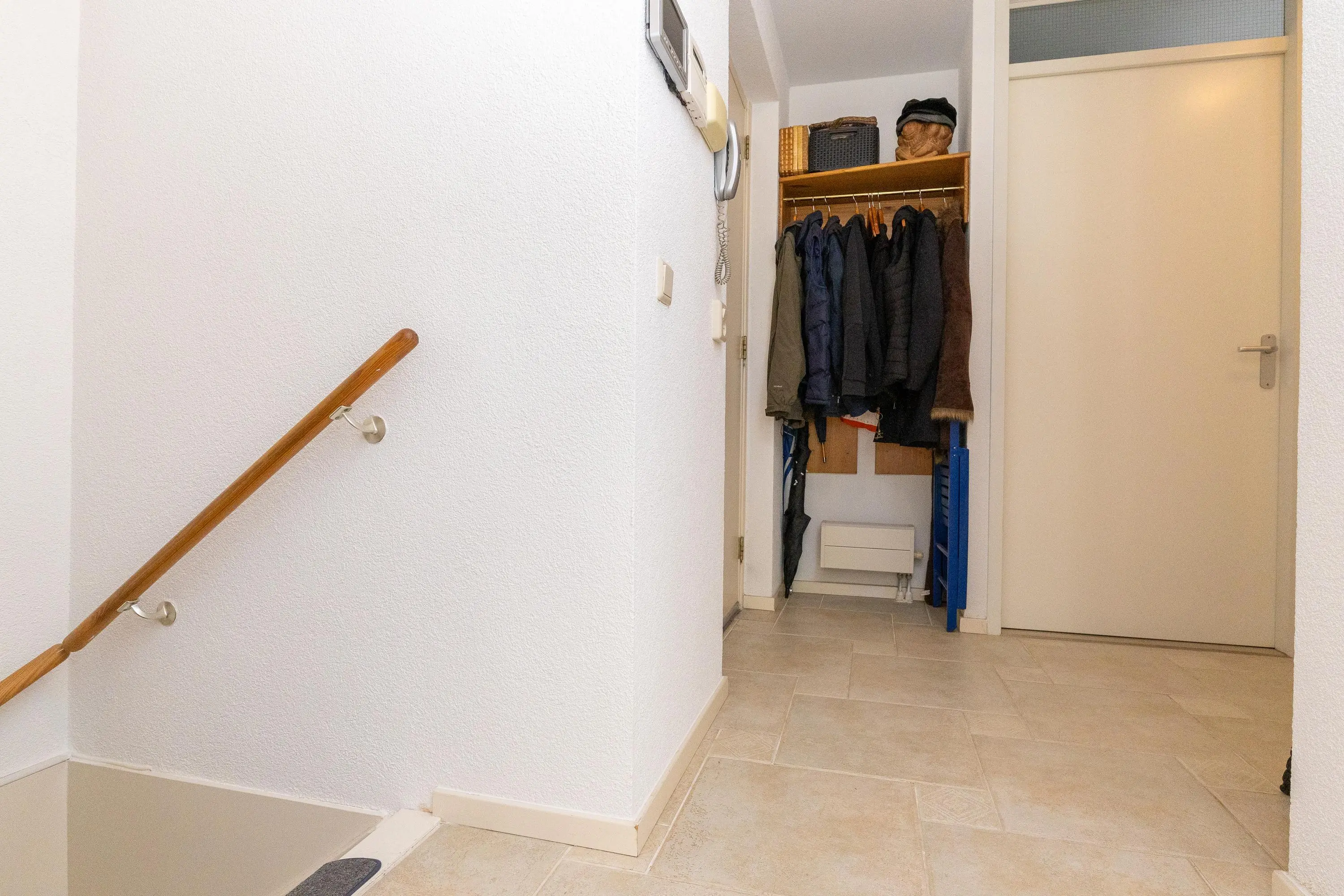Daarnaast beschikt de woning over een inpandige berging met aansluiting voor wasmachine en droger. Zowel vanuit een van de slaapkamers als vanuit de berging is er directe toegang naar buiten, wat de zelfstandige gebruiksmogelijkheden van deze verdieping verder versterkt.